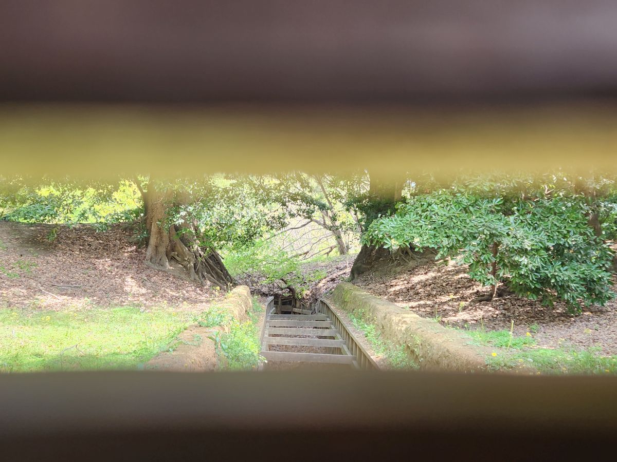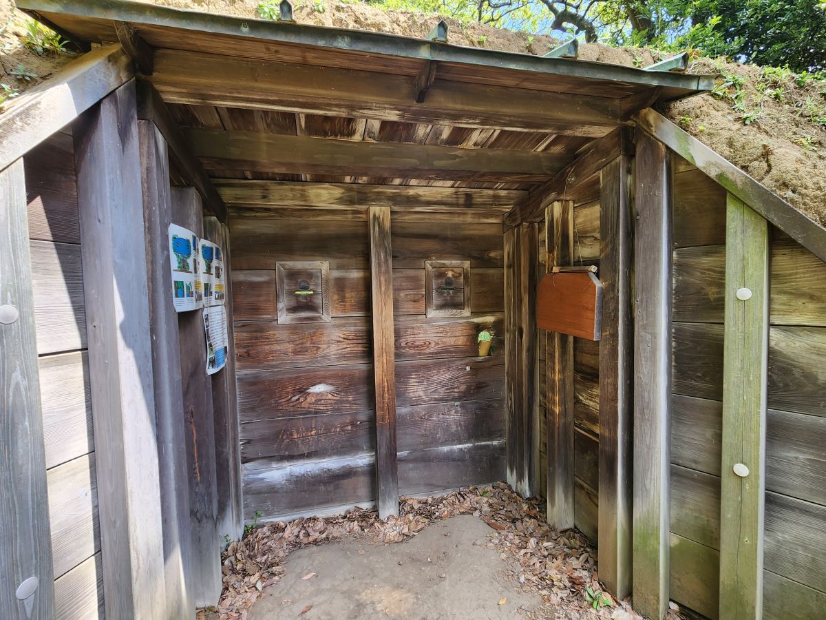More cherry blossoms here – and duck hunting blinds! Ducks were lured into the trenches with bait and the hunters watched from a konozoki – the small opening in the wooden doors built into the blind-mounds. There was also a wooden plank hung in the konozoki that the hunters would hit with a wooden mallet. The domestic ducks were trained to respond to the noise and were lured into the trench where the hunters then caught them in a net.