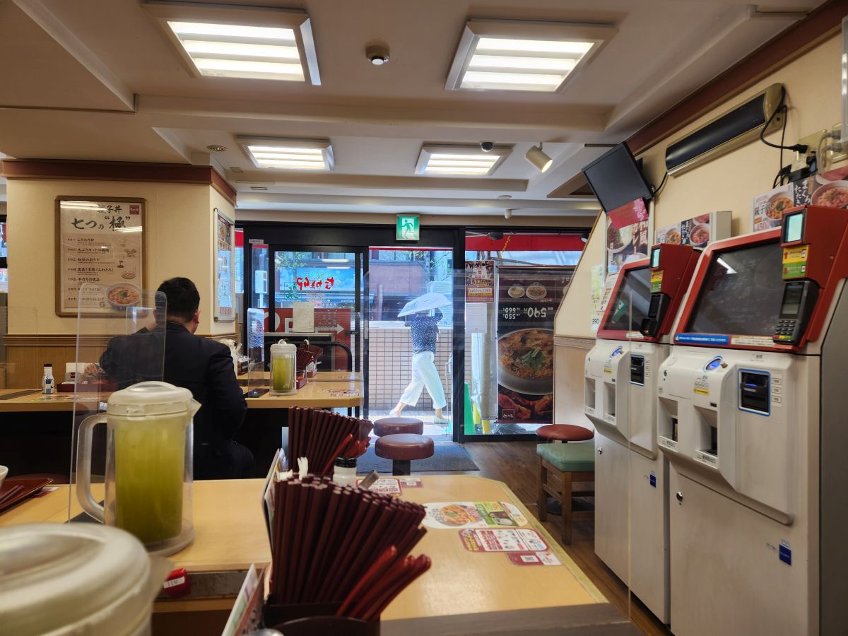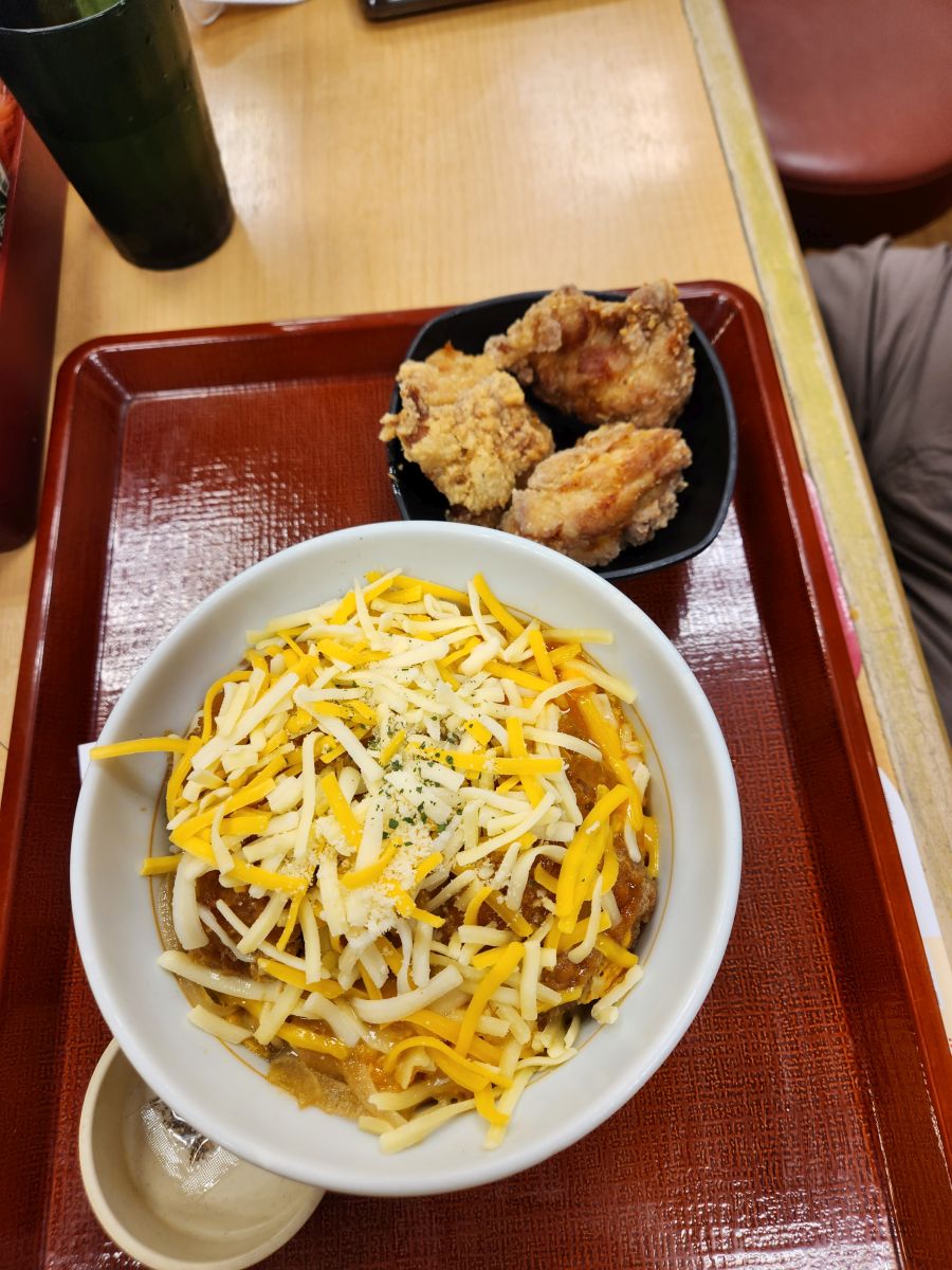 And find we do! An adorable little restaurant called Nakua that serves excellent rice and egg dishes – all ordered through a vending machine. Of course. We are getting very used this method by now. At any rate, we share an excellent egg and rice dish with Tonkatsu (breaded, fried pork) and cheese on top as well as a serving of excellent fried chicken, Kaarage. Both excellent and filling and we are happy and on our way in no time.
