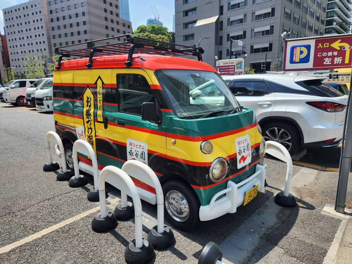 But now, we have to navigate our way back out of this place. That takes some doing and about 10 minutes to weave our way past the subway station and up onto street level somewhere off the track of where we were heading! Oh well, we like to walk! Following the apt-to-be-wrong Google directions, we eventually make our way out onto some broad avenues, passing, of all things, a shoeshine bar? No way – only in Japan! And an adorable Jamaica theme painted little van.