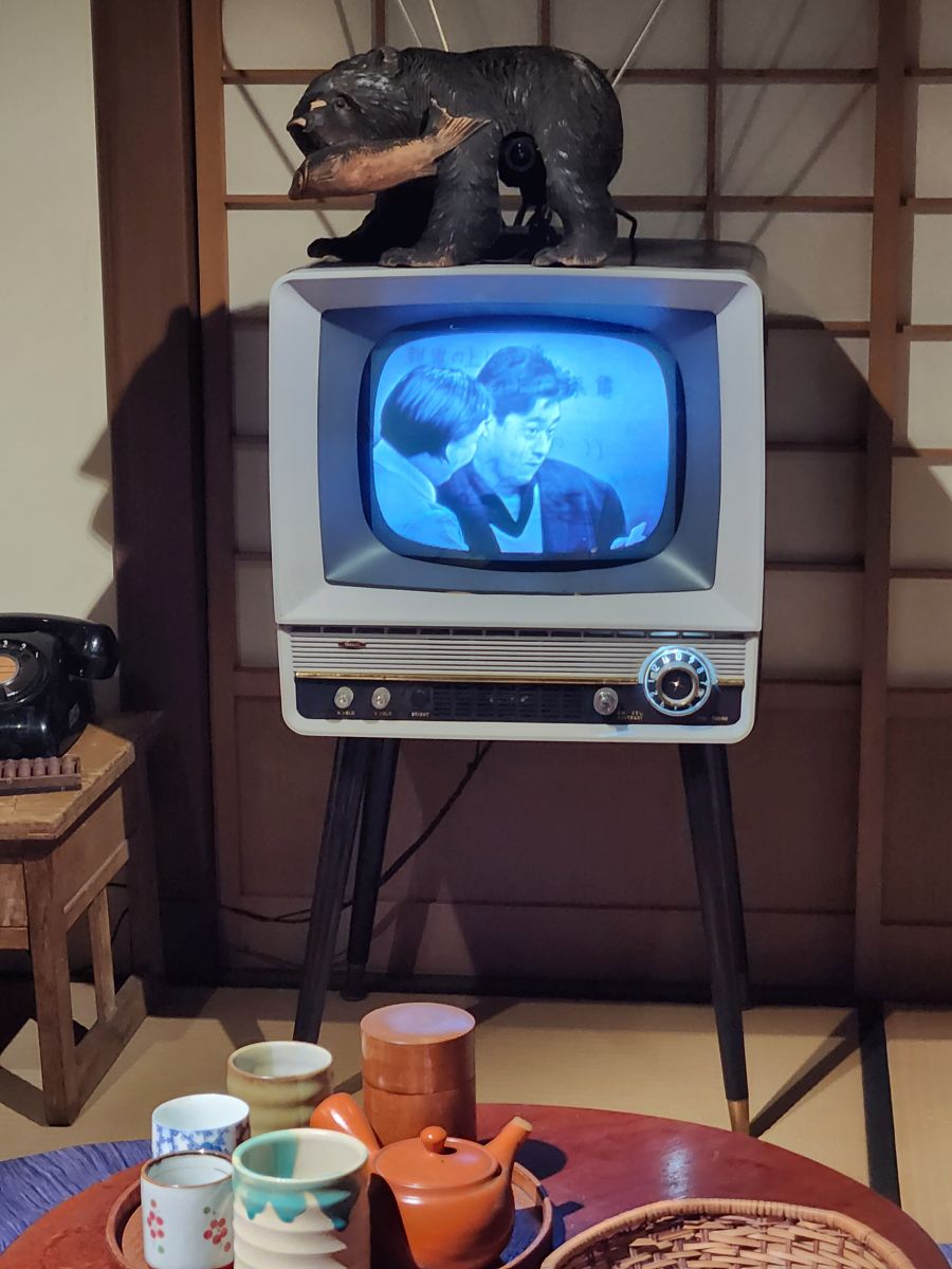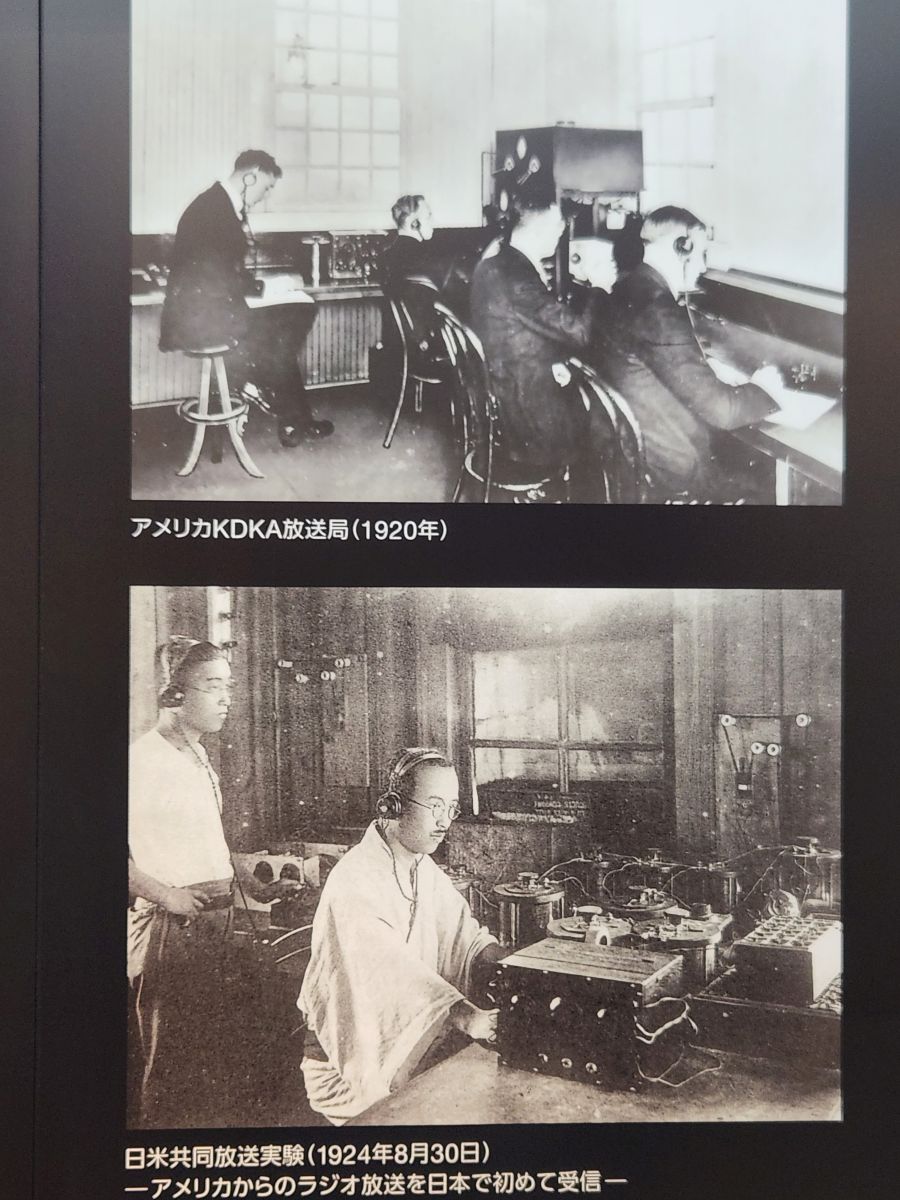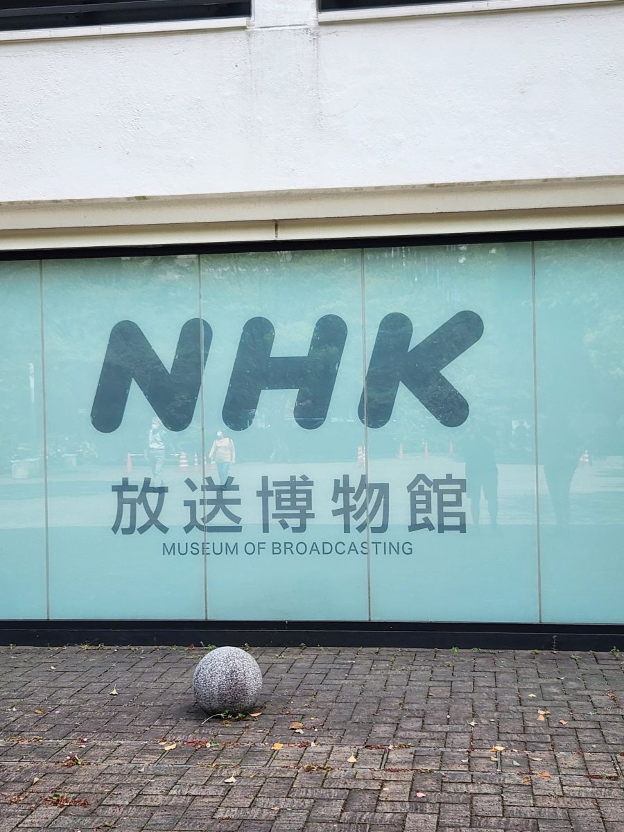 Some 20 minutes later, after climbing a very steep and long hill, we arrive at the NHK Broadcasting museum, which is free, and is really, really interesting. (Especially because Ed and I are both radio and tv aficionados!) They have everything here, from the history of JOAK, the first radio station here in Japan (5 years after KDKA went on the air – and they even have a photo of the KDKA studios!) to the first TV broadcasts to old equipment and displays. Plus, interactive exhibits where we can be on television! And displays of all the old Japanese shows – plus some obviously very famous ones with dolls and figurines. That are all very cute – even if we have no clue who or what they are! Very fun and informative, even in Japanese! There is enough English to help us along – and we end up spending almost 2 hours exploring the 2 floors of the museum.