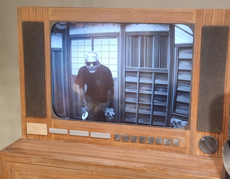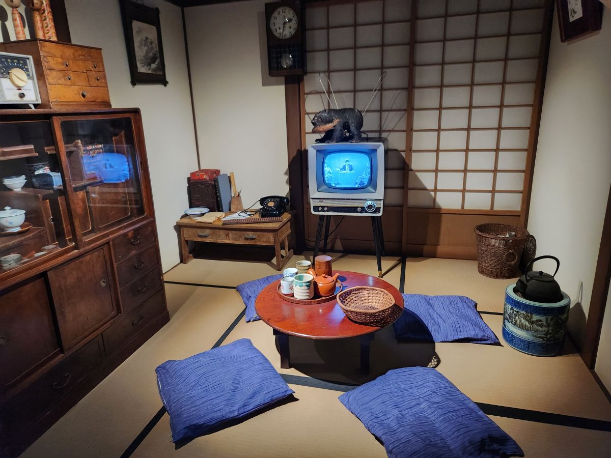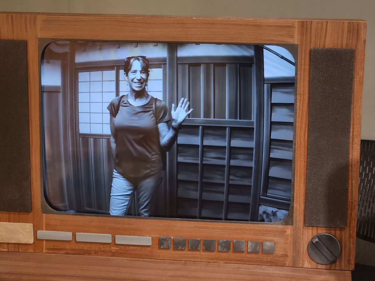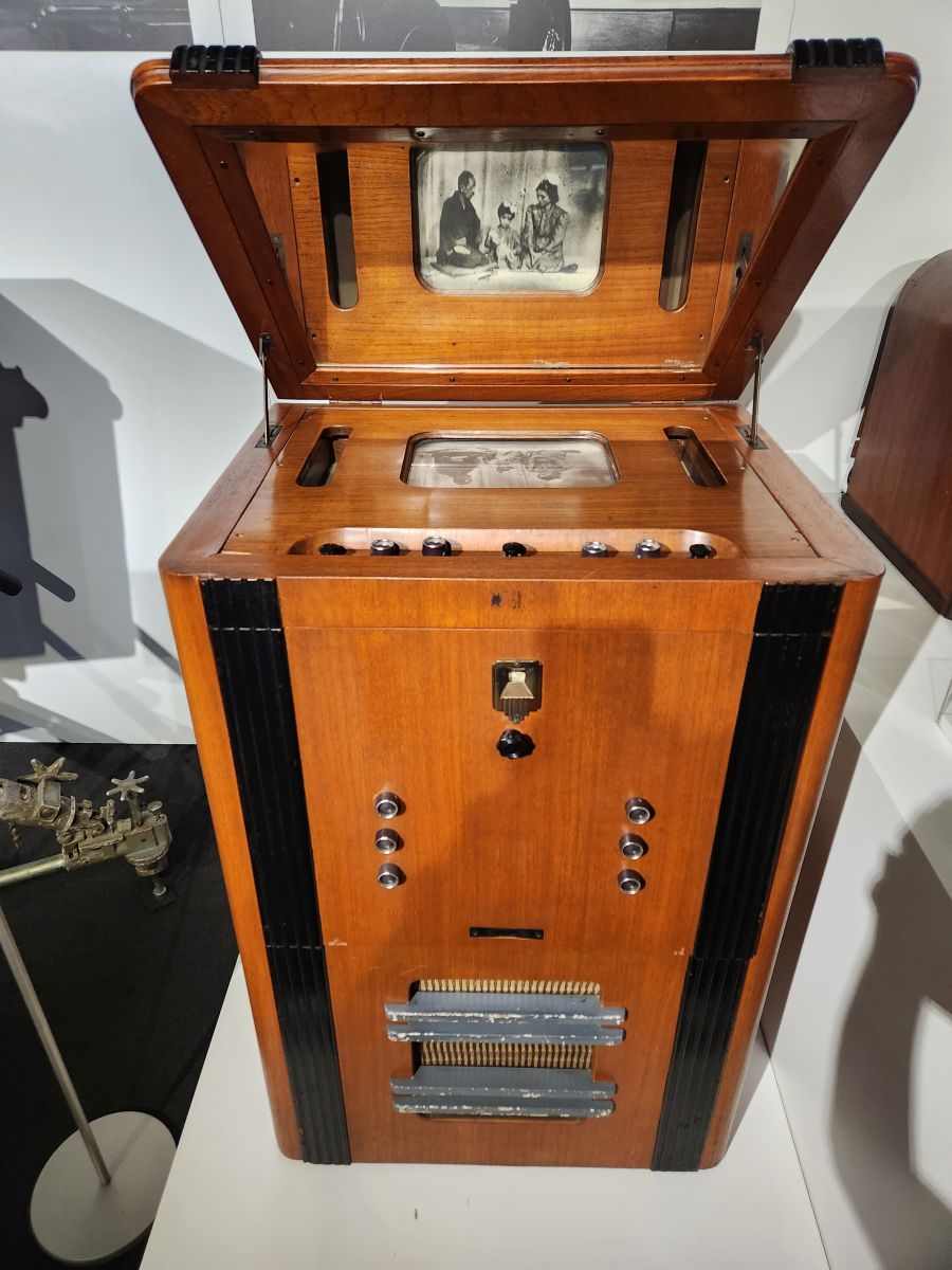 Some 20 minutes later, after climbing a very steep and long hill, we arrive at the NHK Broadcasting museum, which is free, and is really, really interesting. (Especially because Ed and I are both radio and tv aficionados!) They have everything here, from the history of JOAK, the first radio station here in Japan (5 years after KDKA went on the air – and they even have a photo of the KDKA studios!) to the first TV broadcasts to old equipment and displays. Plus, interactive exhibits where we can be on television! And displays of all the old Japanese shows – plus some obviously very famous ones with dolls and figurines. That are all very cute – even if we have no clue who or what they are! Very fun and informative, even in Japanese! There is enough English to help us along – and we end up spending almost 2 hours exploring the 2 floors of the museum.