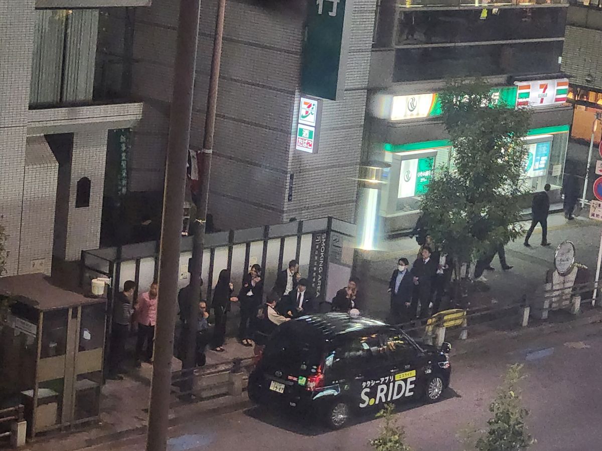In addition to the great food, we also have entertainment watching the smoking area outside on the street. You are only allowed to smoke in designated areas – outside – and they are capacity controlled to boot. So there is this huge line waiting to get into smoke! It is crazy. At first you think it is a bus stop – because it looks just like one – but no, it is a smoking area. Japan! Full of interesting little quirks.