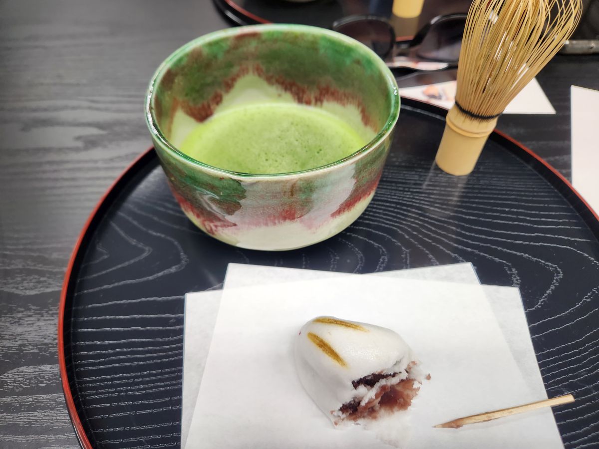 Next we get to try our hand at making our own tea. Ok, arm strength. You really have to whisk really hard and fast to get the appropriate bubbles. It’s all well and good, but whatever. It was included and, we can say we’ve done it now.