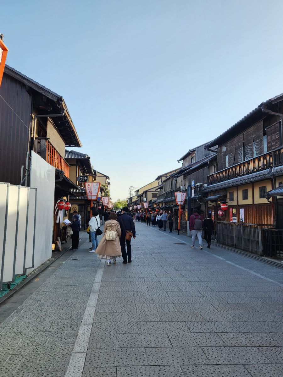 Our next stop is Gion, the geisha area, which here in Kyoto are called geiko because it sounds sweeter and nicer, like the word for deer. Osamu explains the process of becoming a geiko; the girls start at 16 and are called meiko, then at 20 to 22 years of age they become geiko and choose to either continue as a geiko or go into some other entertainment business, or simply leave to get married. During their training, they live in this district with a mamasan, a retired geiko who trains them. Sounds a little, well, sketchy, to our Western senses, but what do we know?