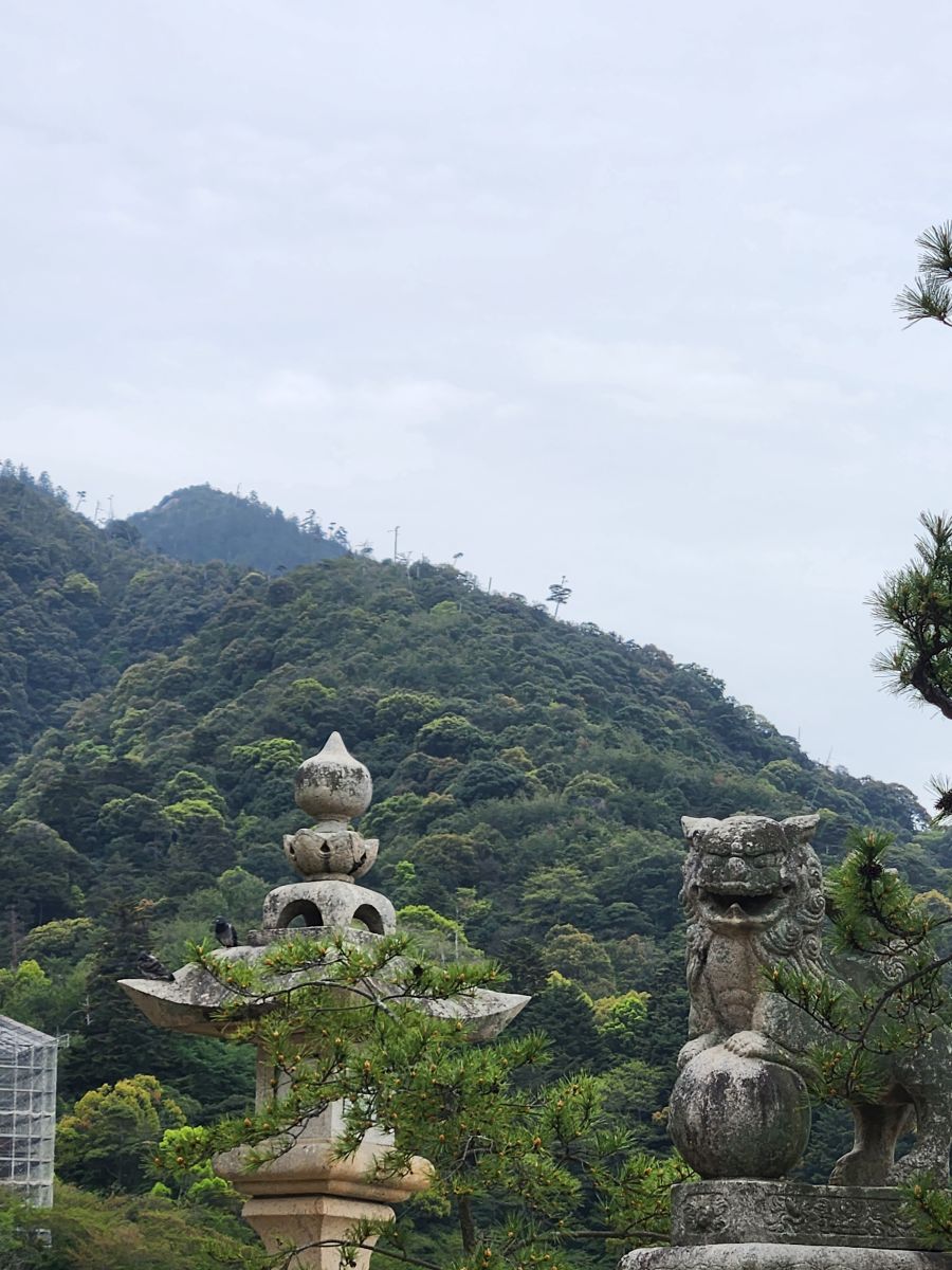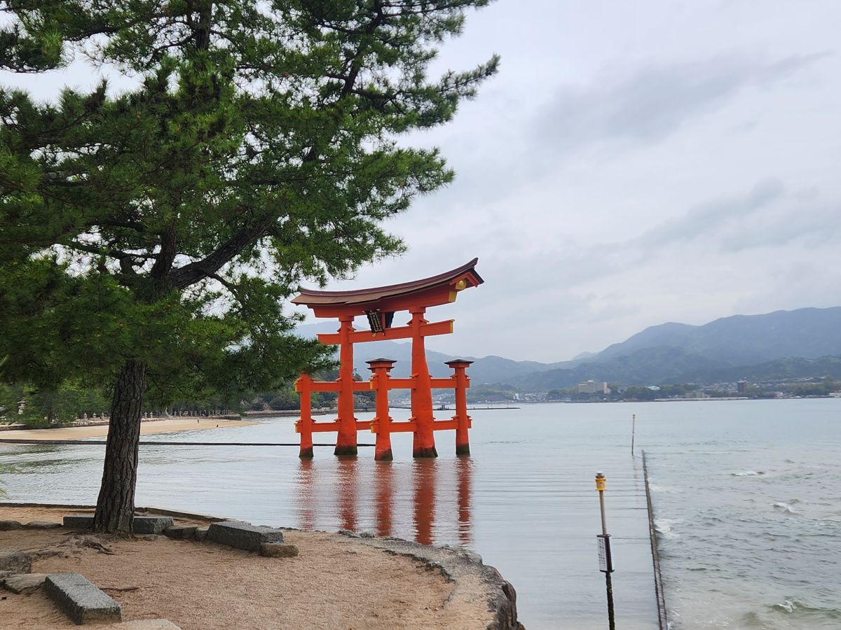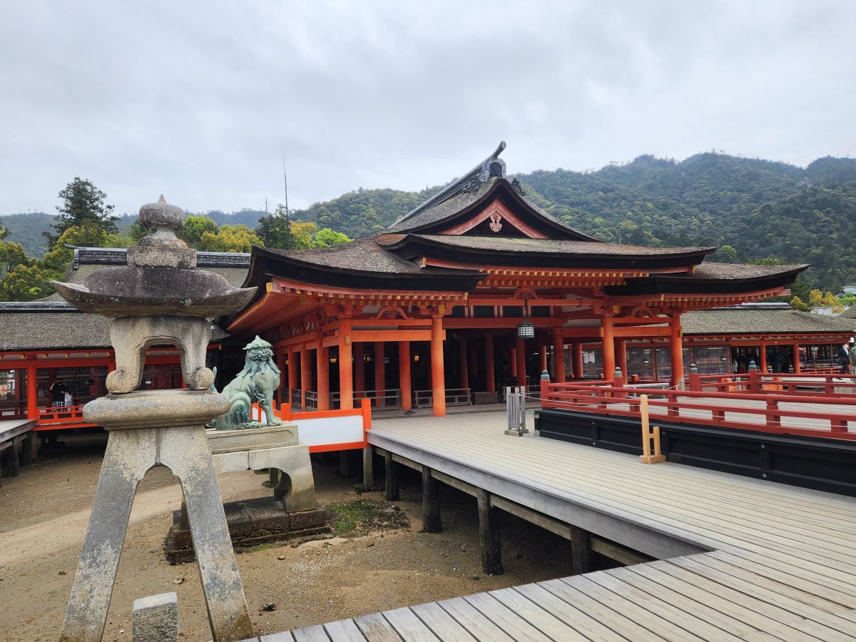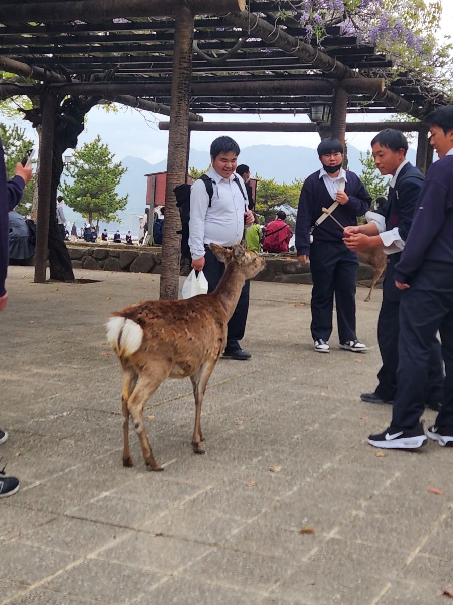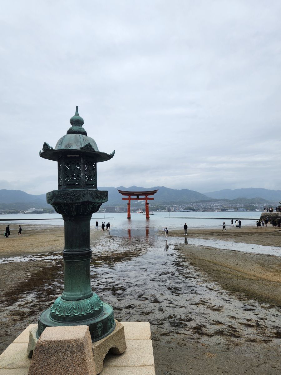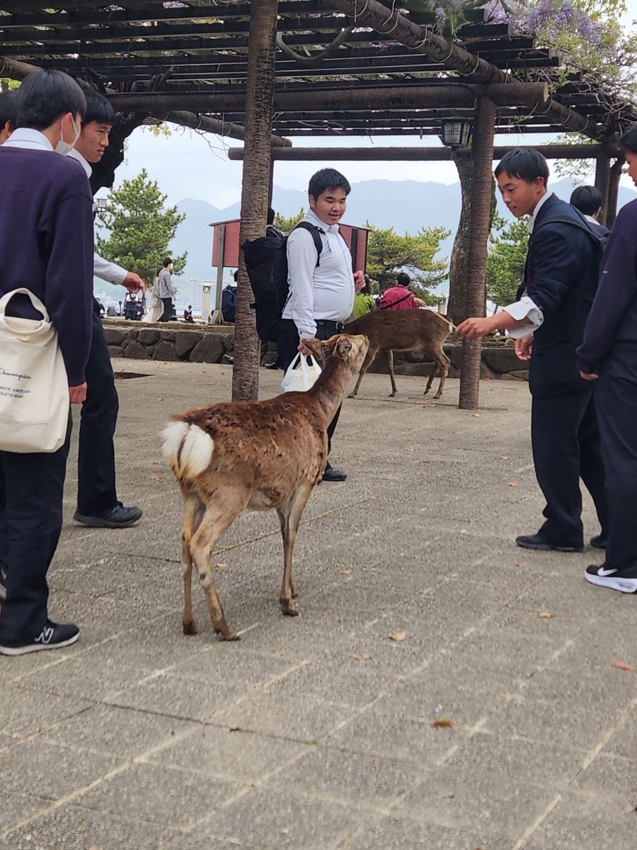 We disembark the ferry and wade through the crowds, the only excitement is watching the free roaming deer – Shikano – meander through the throngs. Sweet. But as Osamu reminds us – don’t touch! We don’t, but we can’t help touching the other tourists, not by choice. It’s just crazy packed. Enough that we put our masks on, and we usually don’t when we are outside. The joys of traveling in 2023. And the worst part us, this is where we are supposed to find lunch! In this mess? Plus, Hiroshima is known for its oysters, so we would love a roasted oyster lunch but we can’t see that happening.