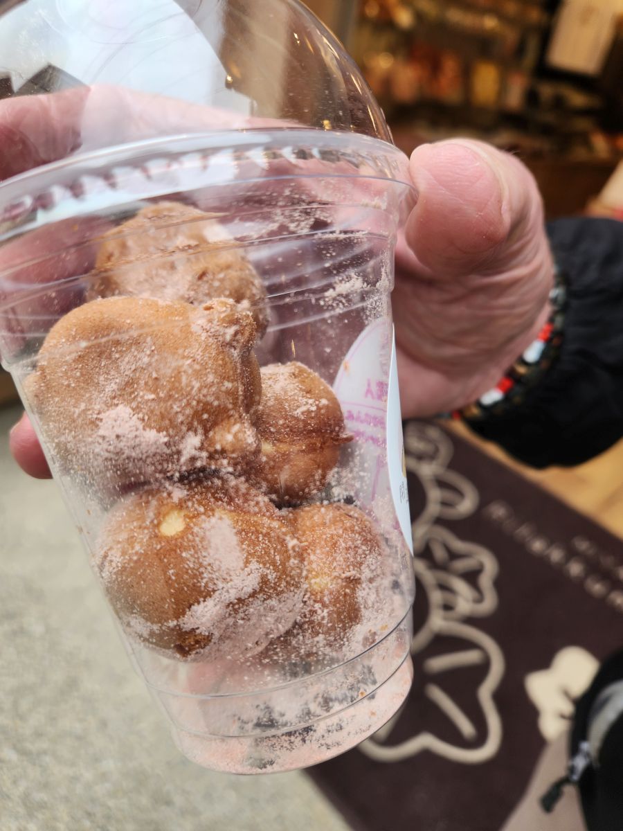 Them it is off into the super jam packed town, quickly stopping at the Miyajima brewery, which we had spotted earlier, for fried oysters (at least we can accomplish that!). There was a teeny beer garden behind the kiosk where we lucked into a table to sit and enjoy our incredibly delicious snacks. More meandering ensued, window shopping and snacking – coz no way do we have time to wait for a sit down restaurant. We end up buying an octopus cake – which is in the shape of a hot dog and deep fried to perfection. Haven’t a clue what’s in it – maybe batter? Who knows and who cares, it is also delicious. As a matter if fact, the only disappointment are the little bear pancake like things with strawberry. They looked so good but are little dry donut hole type things with a little bit of strawberry sugar on them. Oh well, 2 out of 3 ain’t bad…..as the song goes.