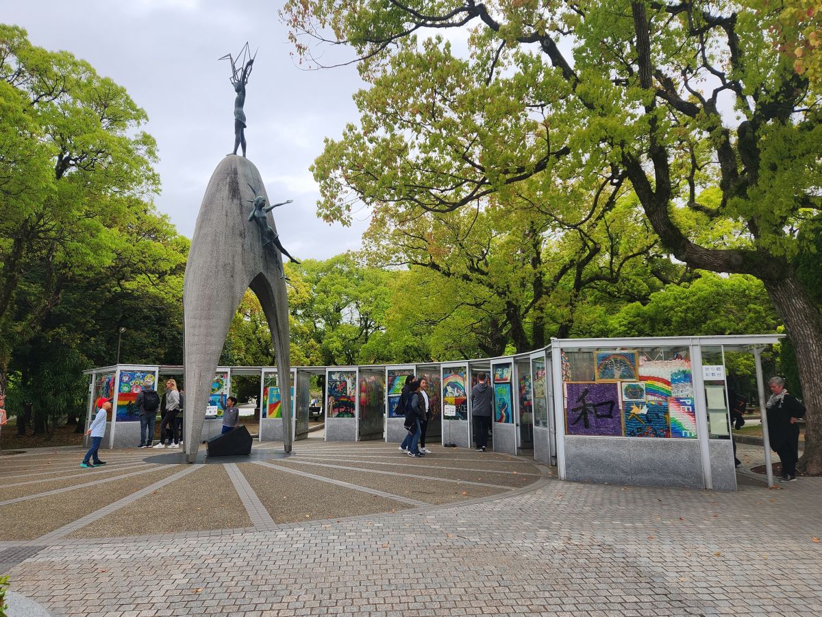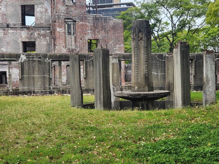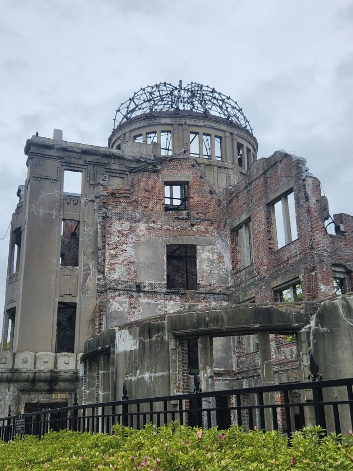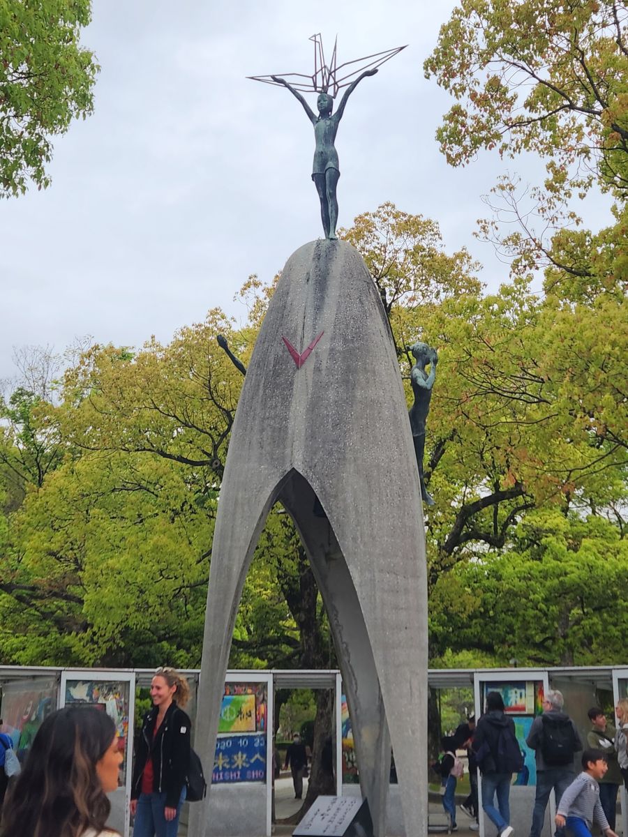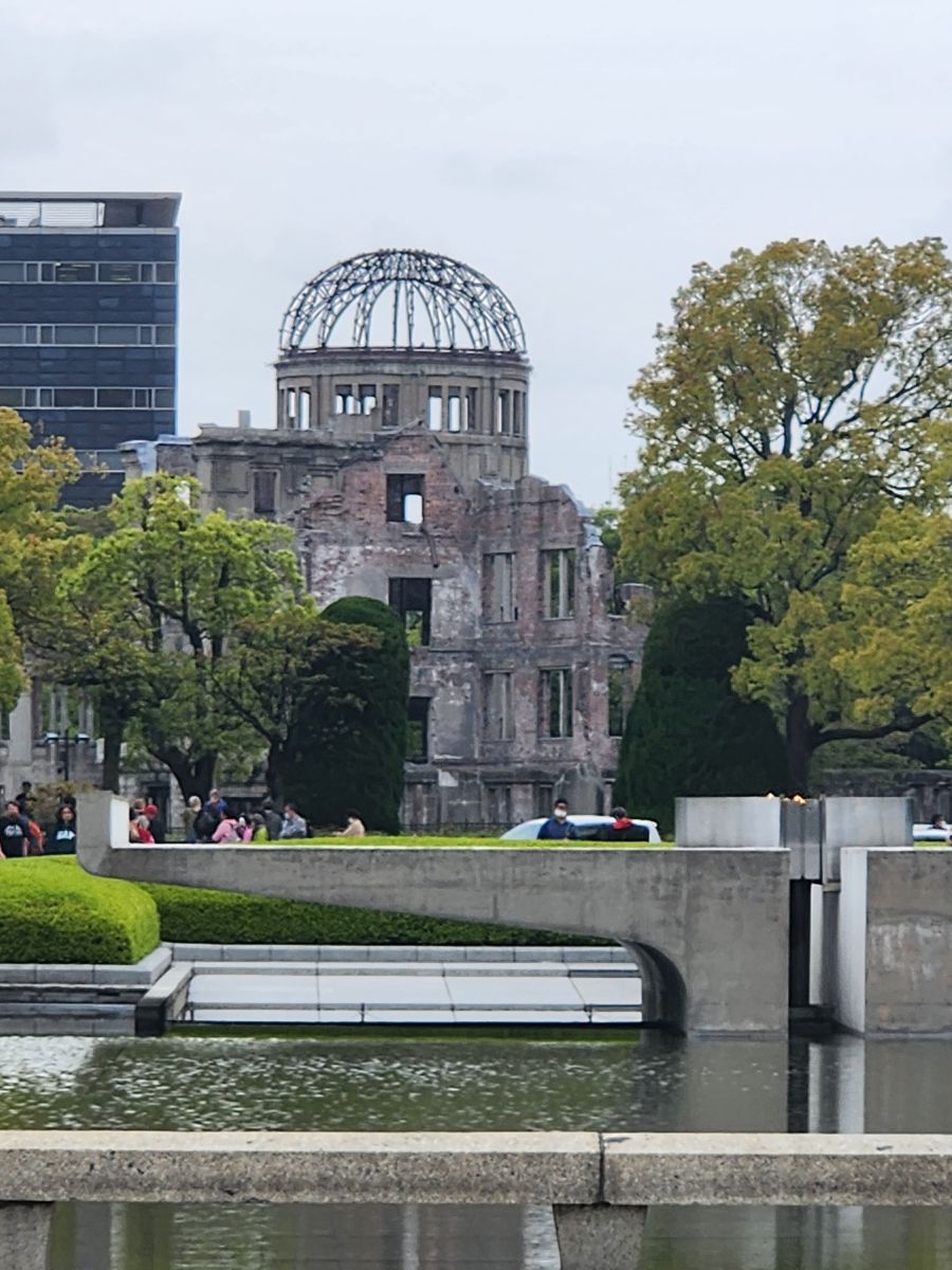 Then we are into the museum, which is probably a really great place to reflect upon the horrors of nuclear bombing and wars in general – but the reality of it is actually the horrors of overcrowding and over-touristing. Uncomfortably crowded. We do manage to take in a few exhibits – like the stones that have the “shadow of a human” on them – where someone must have been sitting or standing when the bomb exploded. And some terribly sad displays of destroyed children’s bikes, a lunch box and clothing, along with the stories of who they belonged to and how and why they are here in the museum.