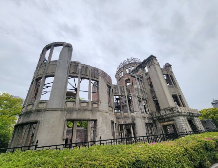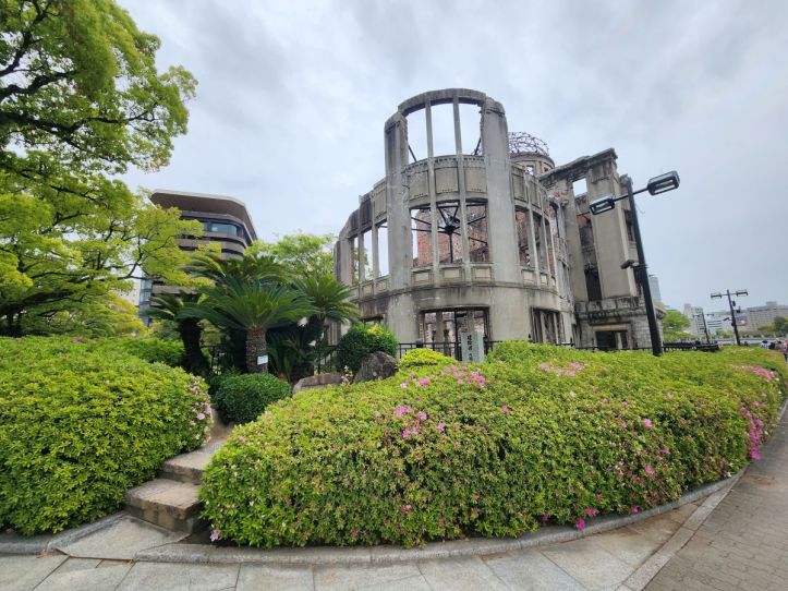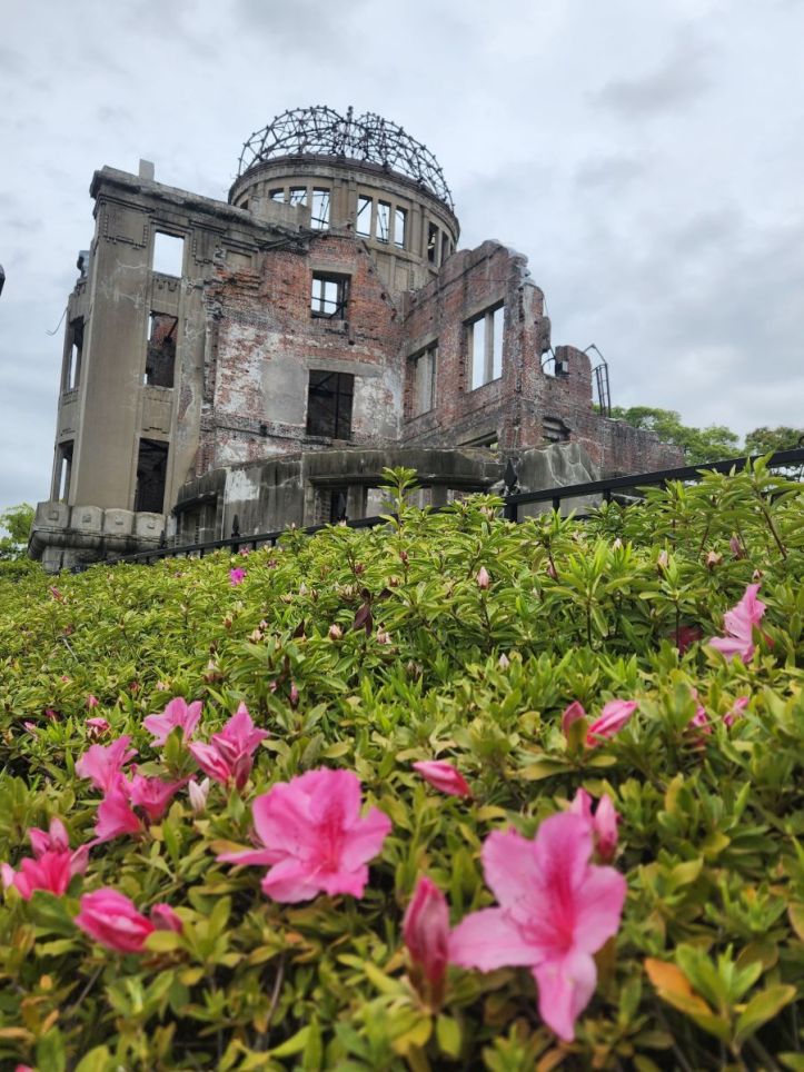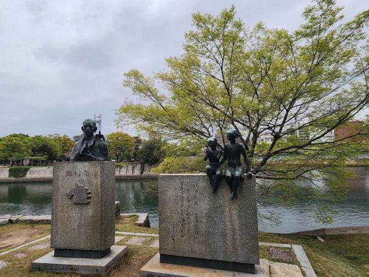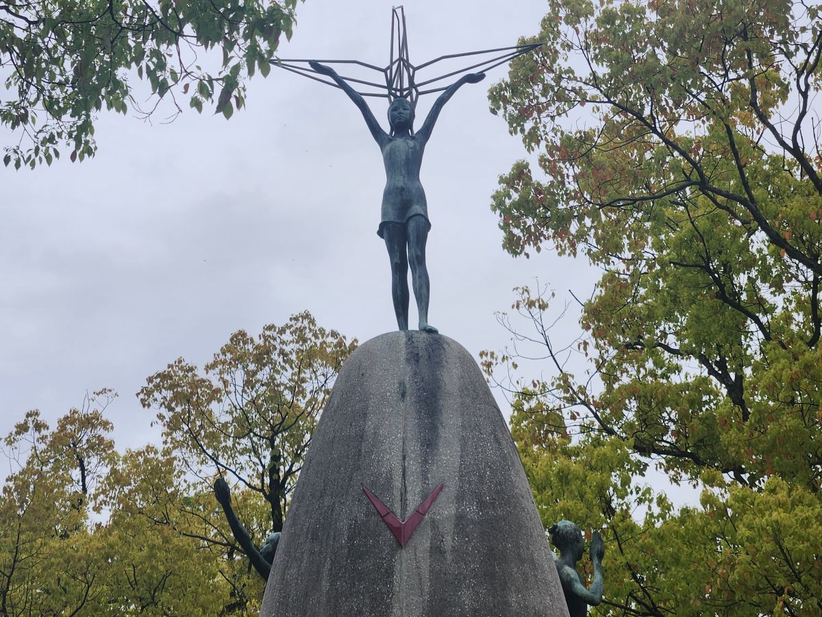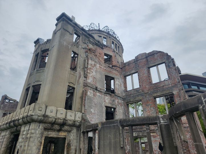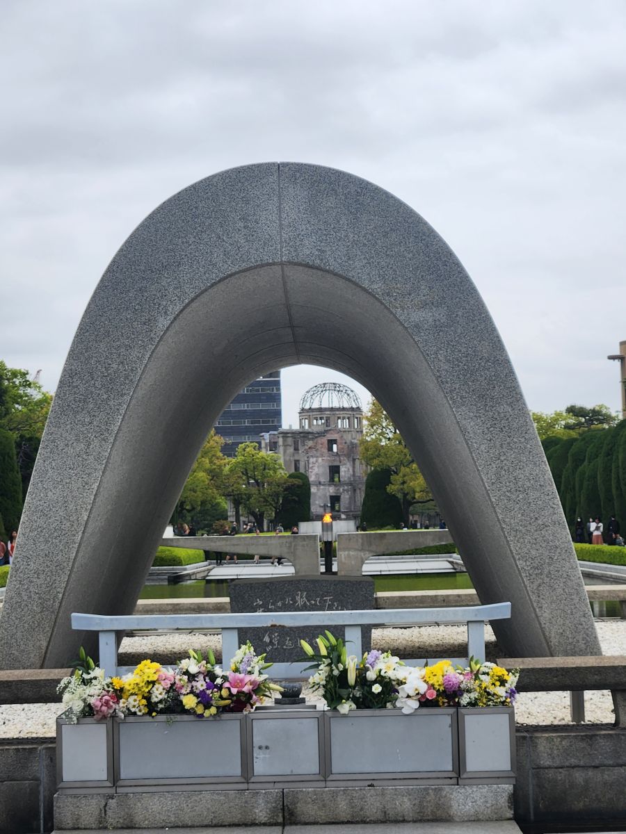 Then we are into the museum, which is probably a really great place to reflect upon the horrors of nuclear bombing and wars in general – but the reality of it is actually the horrors of overcrowding and over-touristing. Uncomfortably crowded. We do manage to take in a few exhibits – like the stones that have the “shadow of a human” on them – where someone must have been sitting or standing when the bomb exploded. And some terribly sad displays of destroyed children’s bikes, a lunch box and clothing, along with the stories of who they belonged to and how and why they are here in the museum.