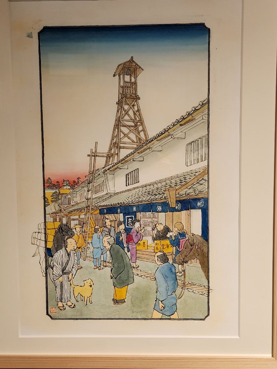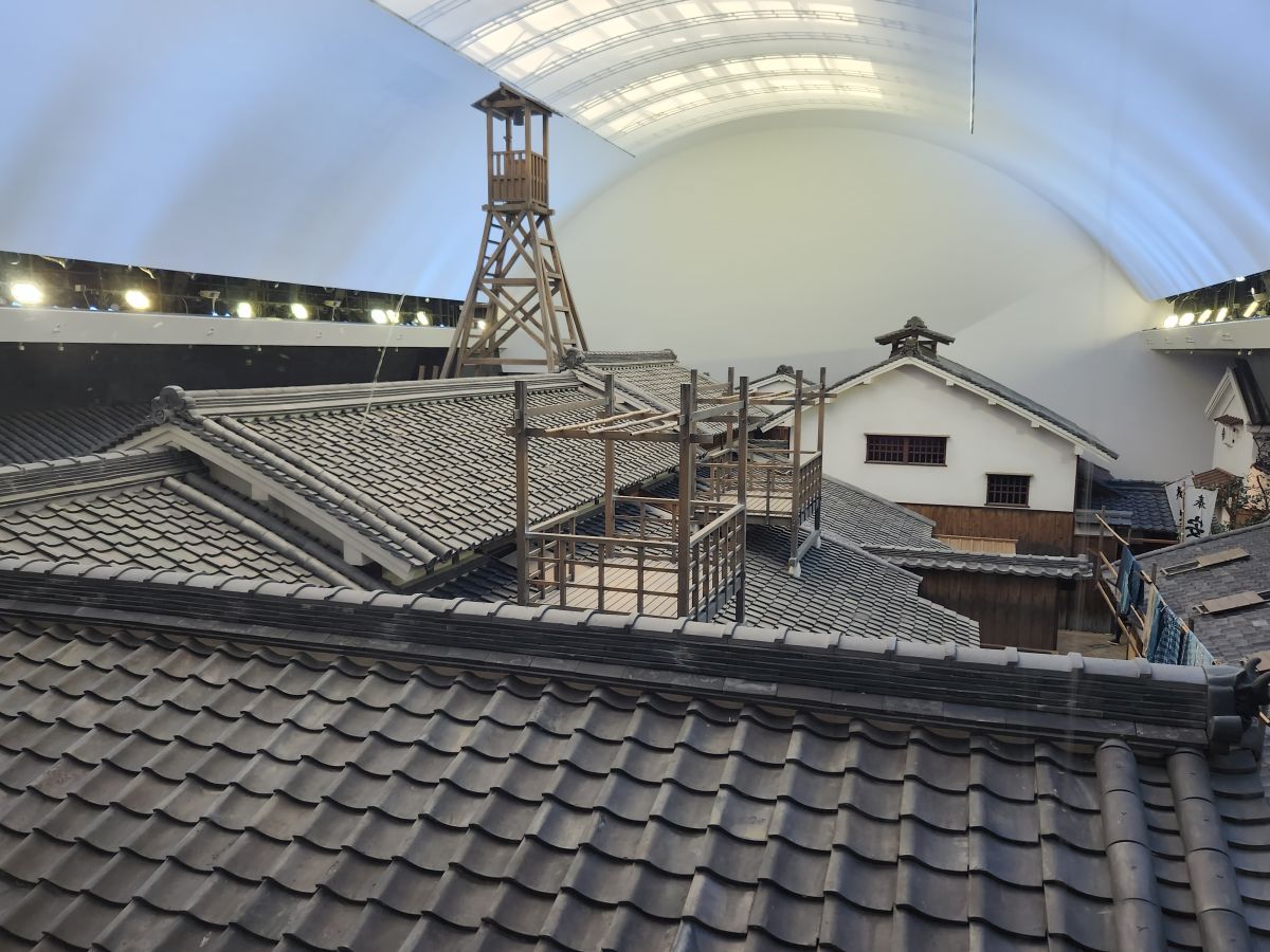 So, we do what we always do….we walk! Over to the Osaka Museum of Housing and Living, a museum that recreates Osaka village life from the Edo period. The village, called Naniwa which is another name for Osaka in the Edo period, has recreations of actual size houses – on the top floor of one of the huge buildings here! Crazy, but fun. It was all inside but you really feel like you are outside the way they set it up – especially when a thunderstorm rolls through and the skies get dark, then the sunrises again and all is sunlit.