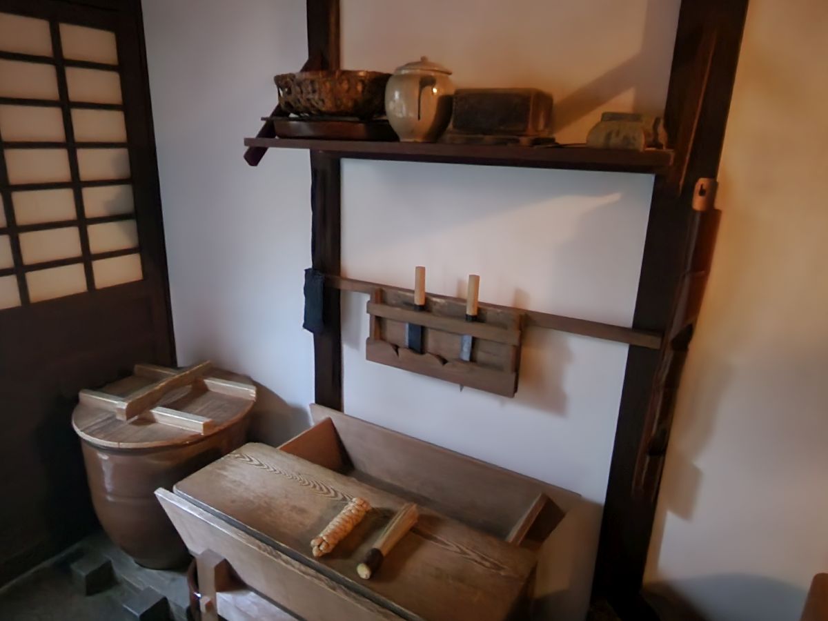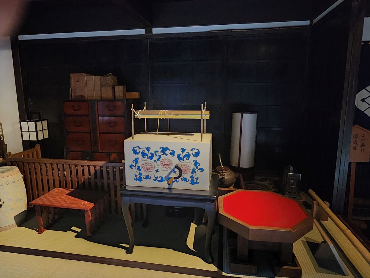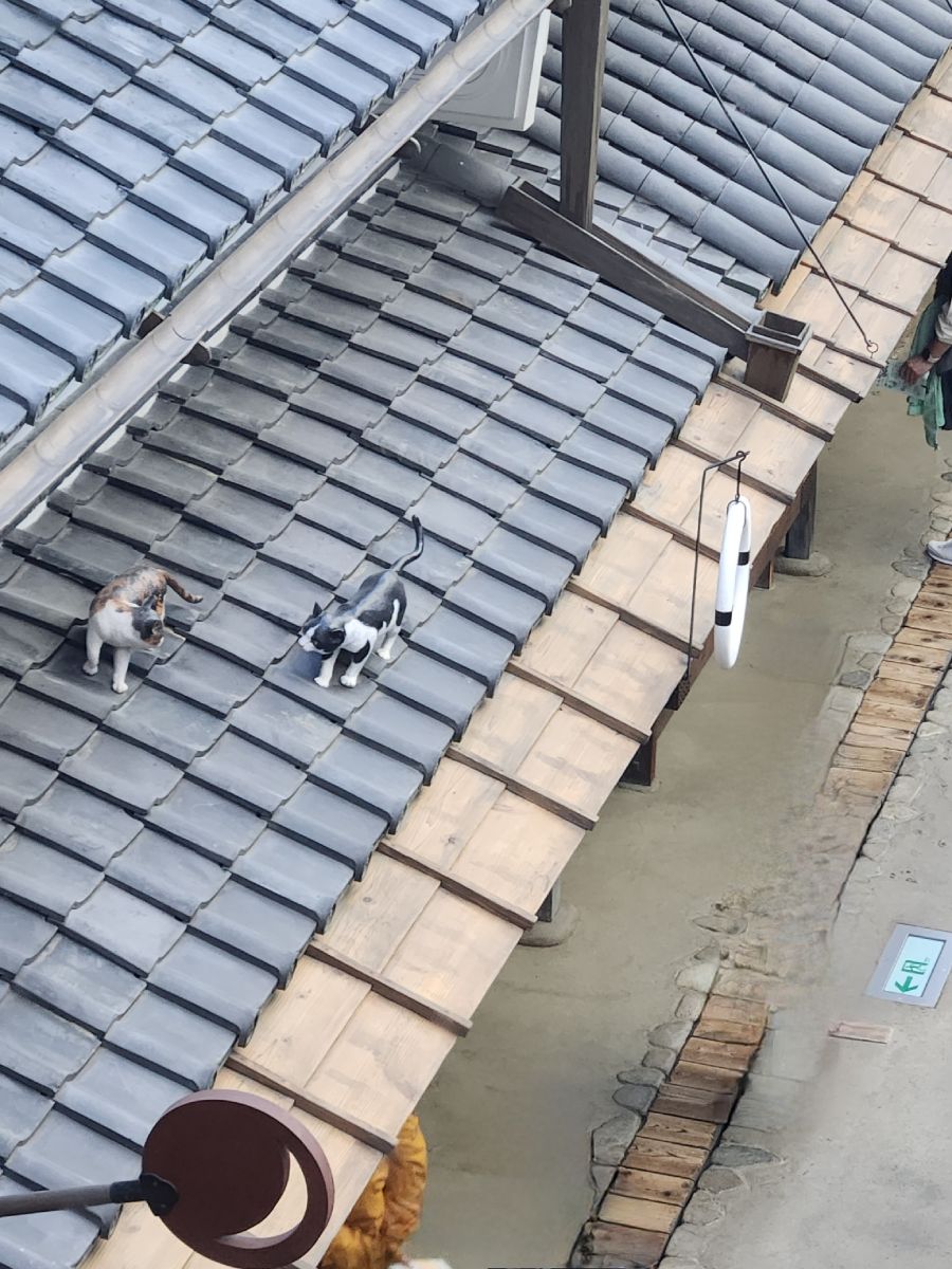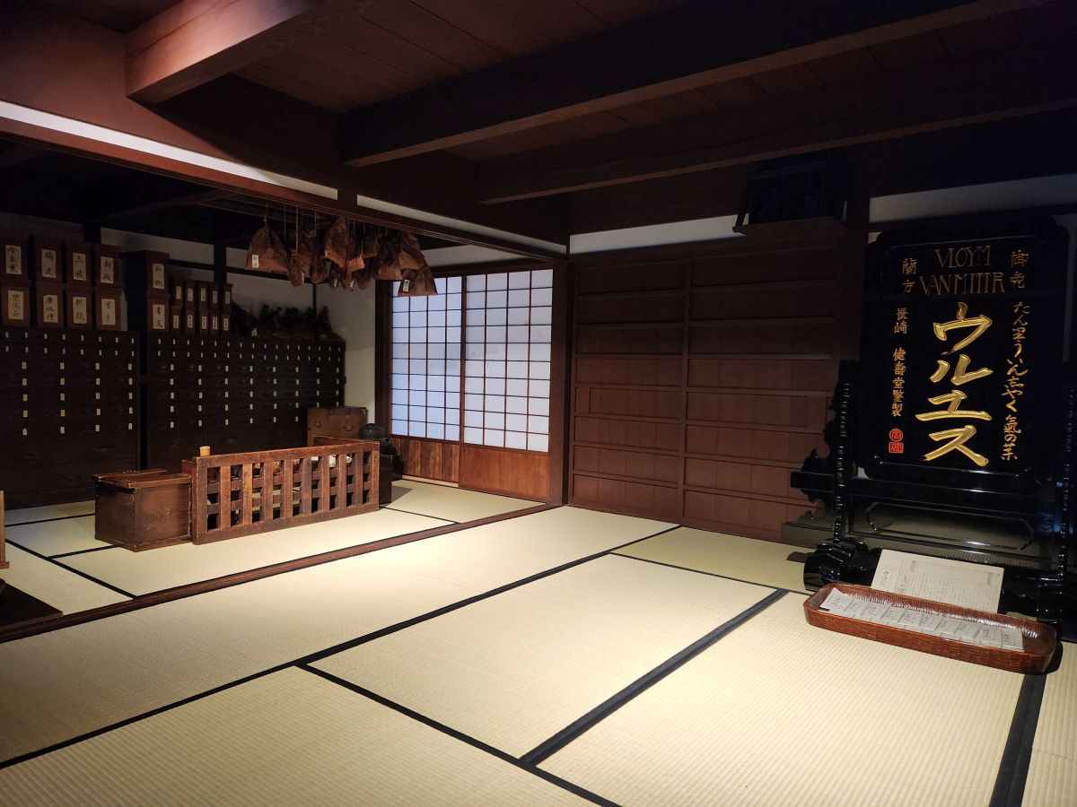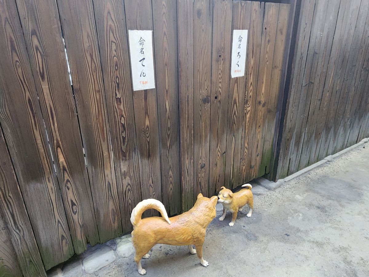 There was the Karamonoya store, for imported goods, the Fabric store, the pharmacy, book store, everything a village would need. You could walk inside all these shops, and we did – exploring all over, including through the back alley where the mascot dogs were standing – Ten and Roku, whose names have something to do with the name of the town (at least that’s what I remember from the audioguide). We really enjoyed learning about all the history and the different types of buildings – including the backstreet tenement houses – which the audioguide helpfully explained that even in those days the rich had gated communities (pretty funny actually!).