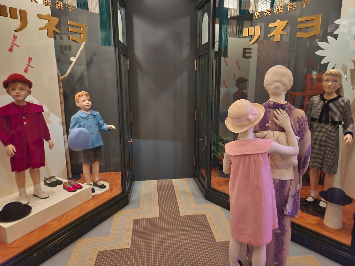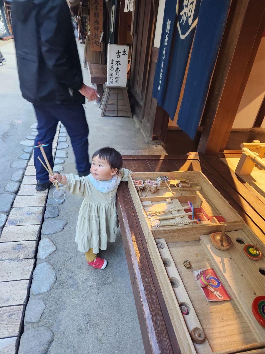 You really get the feeling of life in old Osaka – with the merchants’ street, displaying all the wares out front, like cosmetics and accessories, the “Joinery store” with different tools, the toy store, where you could actually play with the toys left out – which this adorable little girl did – couldn’t resist that picture!