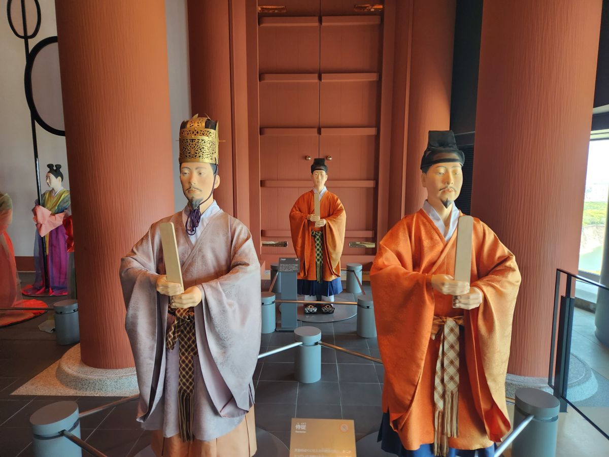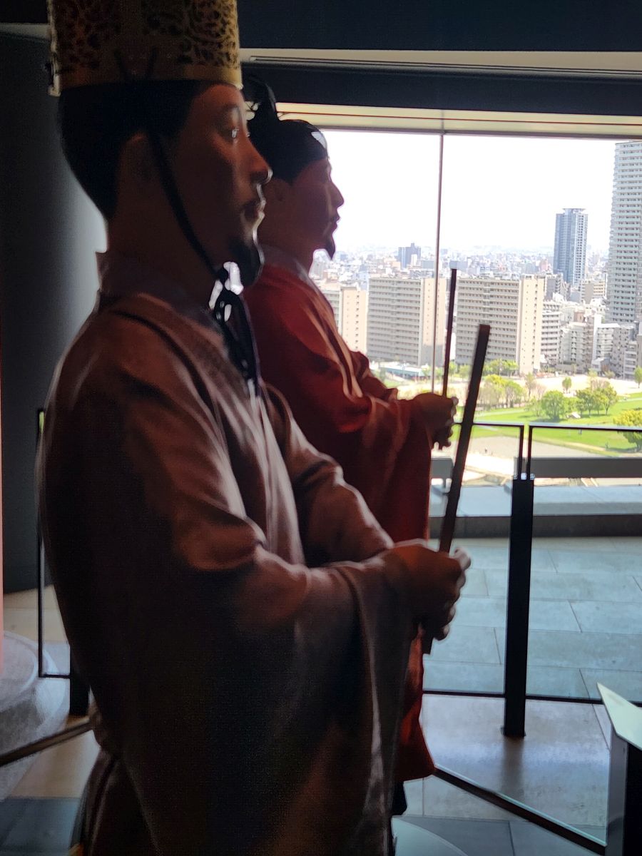 Done with lunch, we set our sights on the Osaka History museum, deciding to take the train instead of walking. We have our Suica cards after all and need to use all the balance. The museum is, once again, on the top floor of an 8 story building – seems like a thing to put museums on the top floor of buildings here! The museum spans several floors, detailing the history of Osaka, including a reconstruction of part of the Naniwa ancient royal palace. There are life size mannequins (which sort of startle you when you turn corners and don’t expect them), soaring ceilings to recreate the feeling of the palace and a view across the modern buildings to the original foundation of the palace.