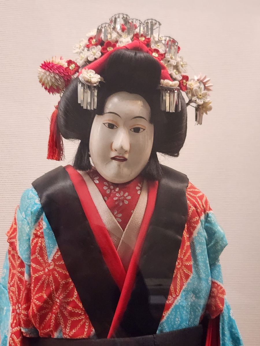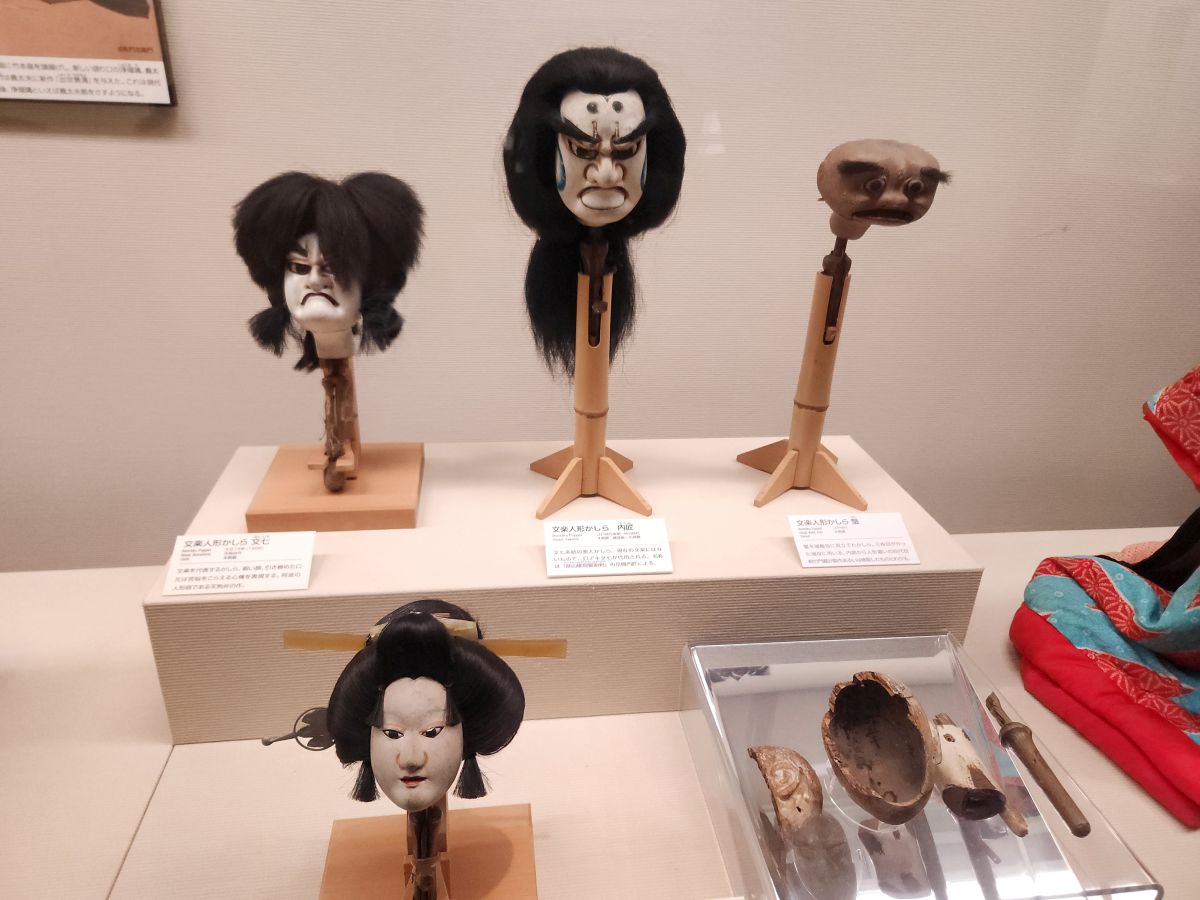 Other rooms hold pottery with painted faces to ward away evil spirits, models of ancient villages and more modern palace grounds as well as these huge floats, full of detailed carvings, that were used during the Autumn Festival of the Wakamatsu Shrine in the late 1700’s. Plus a great display on the ancient theatre, complete with huge puppet dolls – I mean they are almost life sized! – and these scary, creepy puppet heads. Yikes.