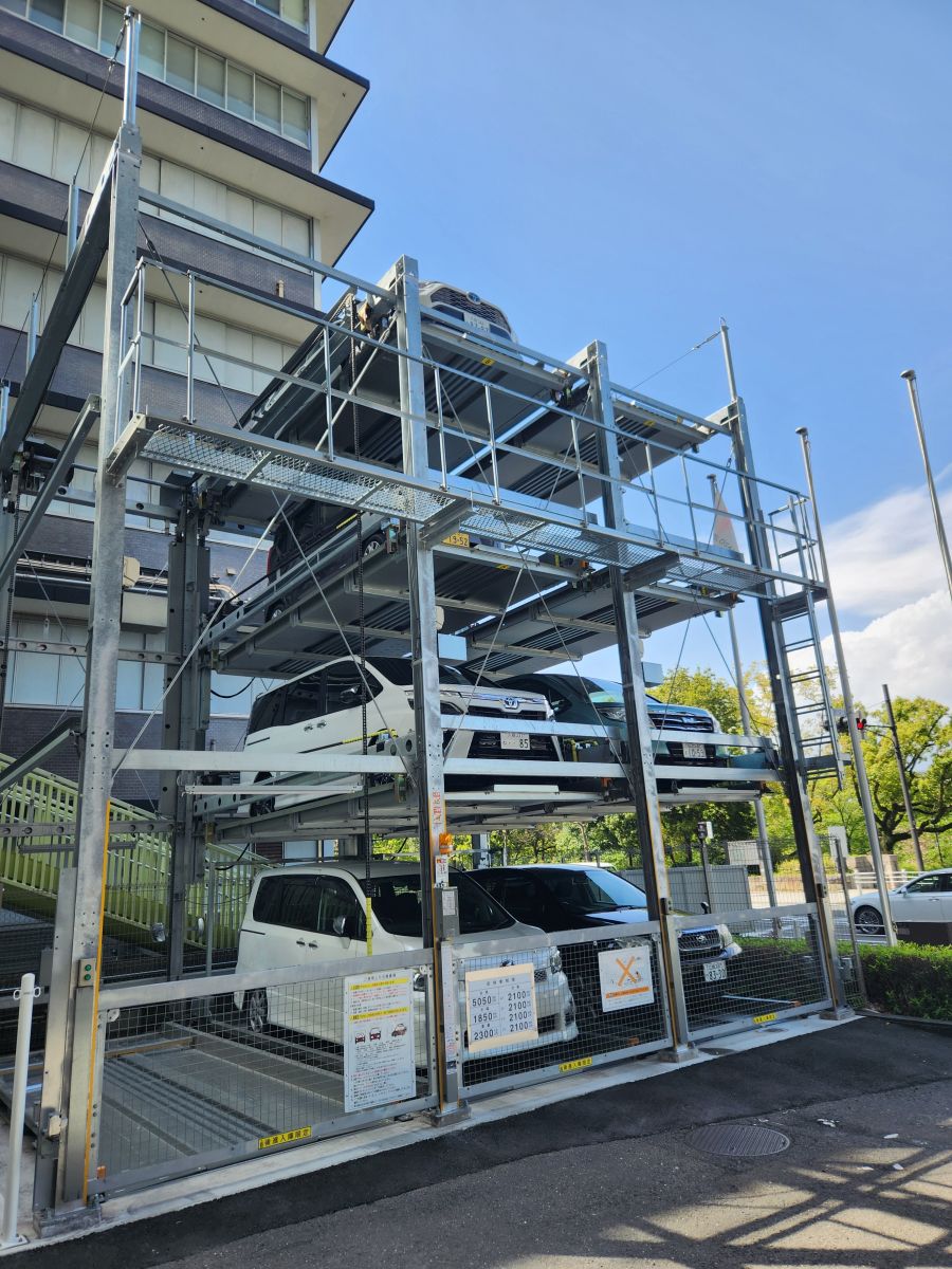 Finished with the museum, we ditch the idea of going into the castle grounds for sunny day photos, the ones we took yesterday look good enough. Instead we strike off into the city streets in search of this little shrine we saw on the map, on the way passing the coolest parking lot ever! It is an elevator parking deck – I guess that is the easiest way to explain it. The cars are backed onto these lifts, then stacked one on top of each other. To get them out, the lifts shift up and down and right to left, like a huge rubic’s cube. Totally wild!