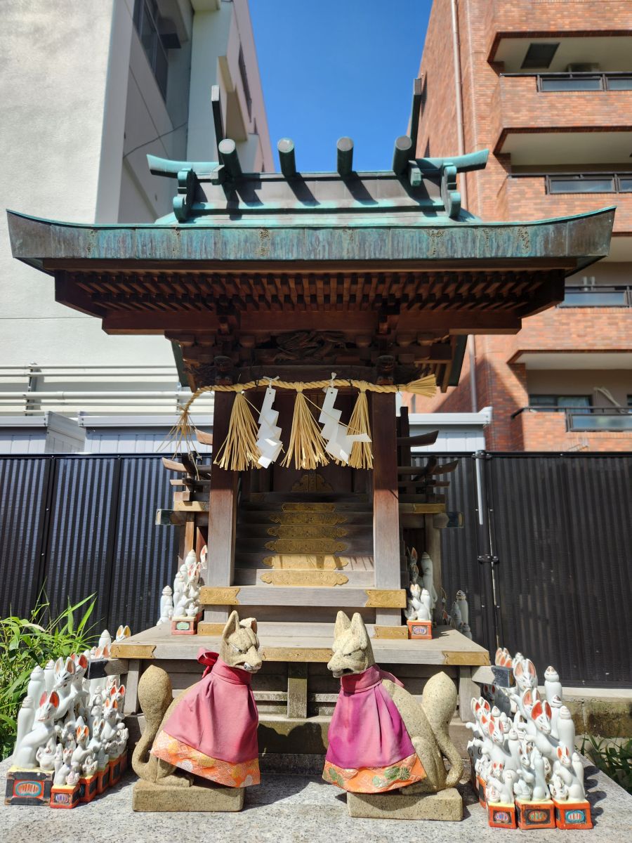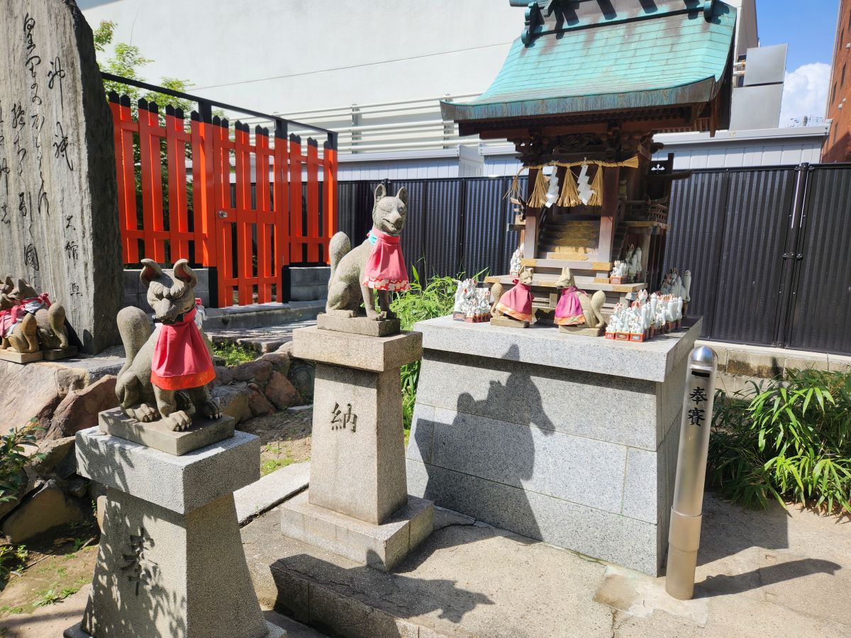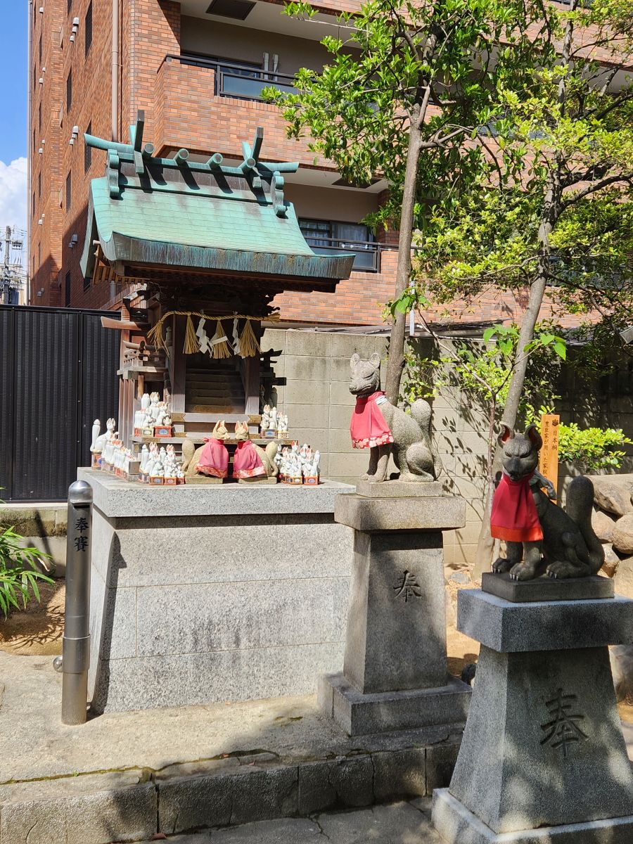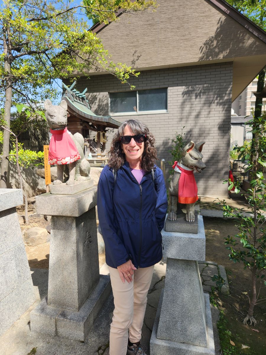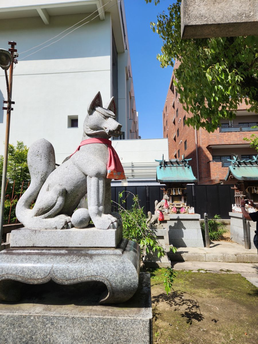 We make it to the Tamatsukuri Inari Shrine, which is dedicated to foxes, same as the crazy packed shrine yesterday in Kyoto. Foxes are considered deities here – they started out as simply guards watching over the shrines and the people sort of turned them into deities and started praying to them. This shrine was virtually empty and lovely and serene, with a small shrine off the main one with hundreds of fox statues. Really fun!