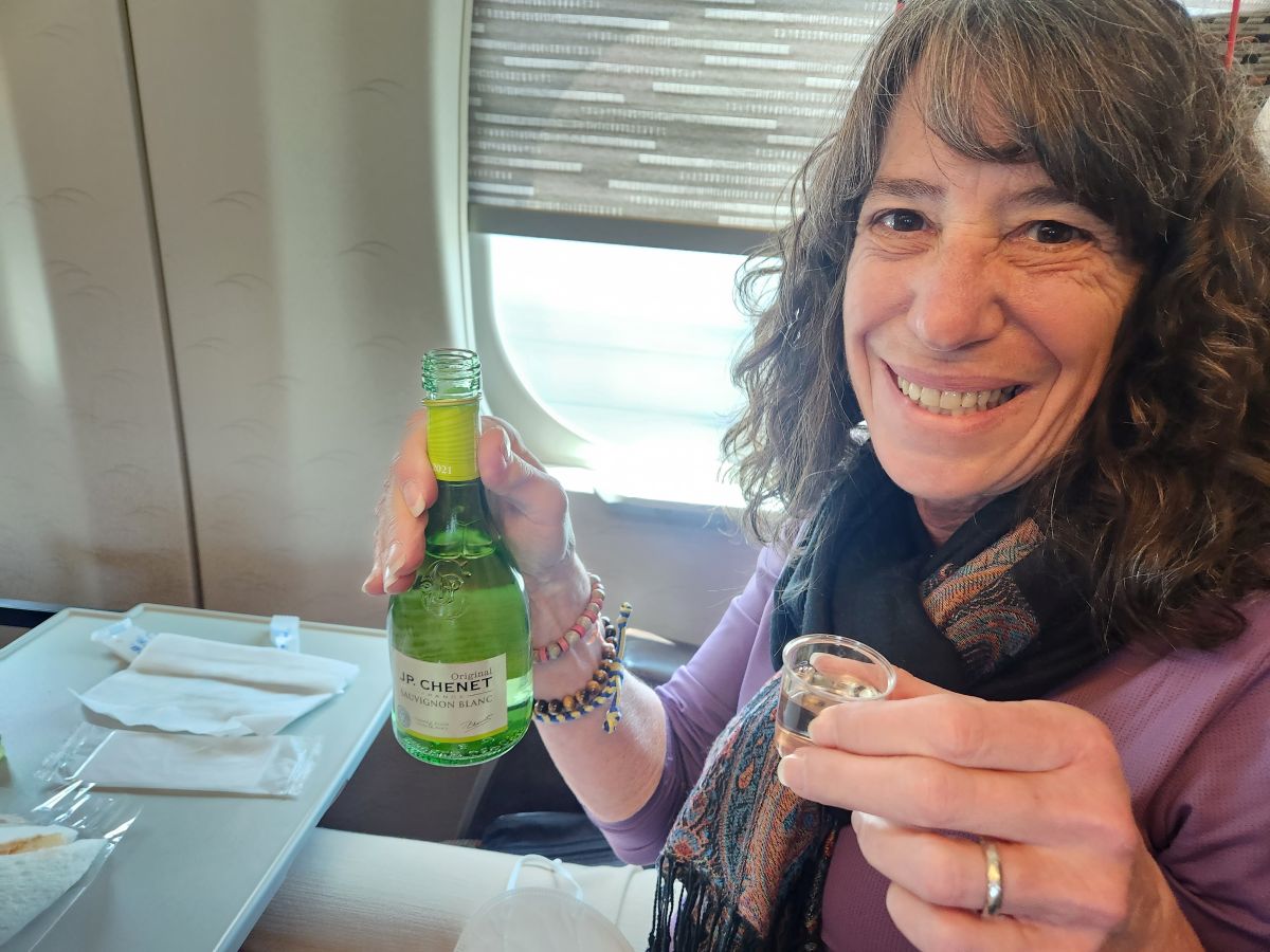 Making our way to the platform, we are in position to board (there are specific positions and ways to line up to get on these trains!) and quickly organize ourselves and get settled in for our comfy train ride. And it is totally great. Comfortable, spacious, quick and easy at over 300 kph. We enjoy our little lunch….