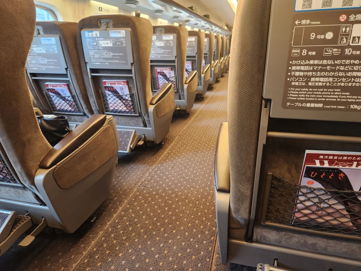 A nice relaxing morning here at the hotel, we’re up, at breakfast and showered – then ready to walk out of the door at 9:00 for our 10:15 train. Scanning our QR code tickets, the machine pops up a little seat information ticket – which explains everything you need to do when boarding and exiting the train. Man, all these systems are so well organized and operated! We arrived at the station really station early because Google Maps shows a Daiso one-coin store there, but once in the station, we’ll be damned if we can find it. Those stupid maps! I swear.