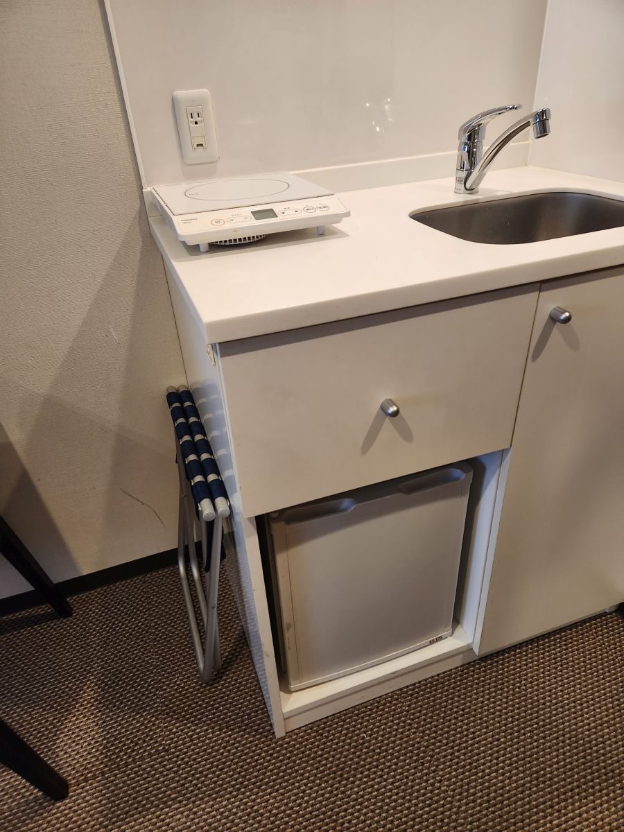 After our beverage, consumed quickly enough to make the bartender happy, we meander through the streets some more, checking out everything, and wondering why Bar Frank opens at 17:40 and not oh, say, 17:30???? Then it is back to the hotel where we can check in. The bags are already in the room (wow! Better than Gate 1!) and the room! It is teeny tiny, but so well equipped – it is amazing how they fit everything in this compact space! A washer/dryer combo, microwave, iron and board, mini refrigerator, flat top cooker, wet bar, all the equipment you’d need to cook and eat. It’s crazy! And perfect for us for one night.