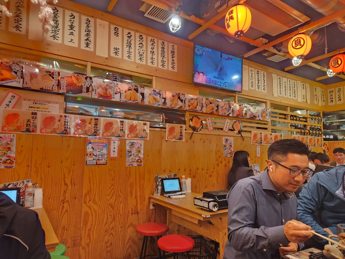 Completely stuffed, we check out on the tablet and notice a fee line for “cover” – hmmmm…apparently those appetizers costs – but only about $3 USD each, so whatever. And the sashimi was more expensive (still only about $13 USD), but it was almost double what we had before. All in all, one of the most expensive meals we have had, but oh so worth it!