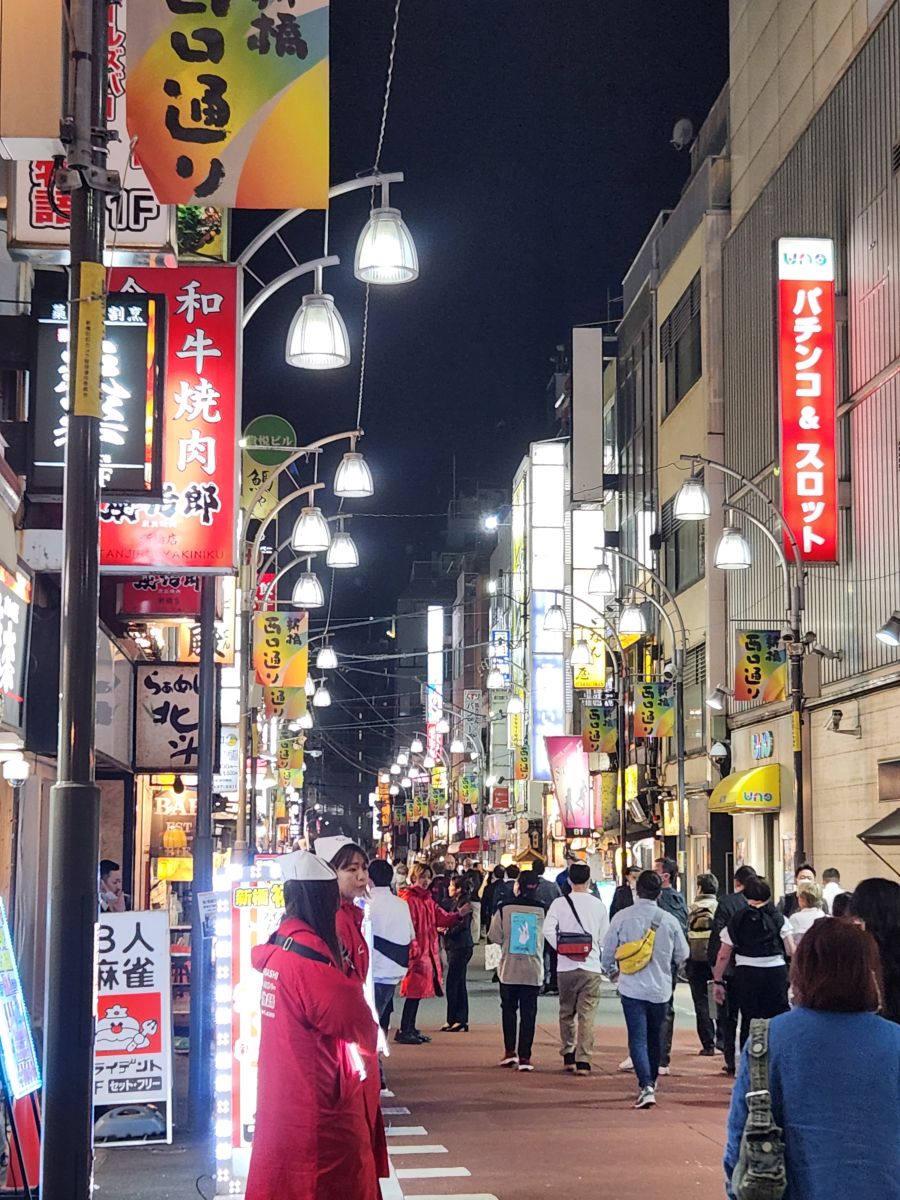 ….and in no time are at the Tokyo train station standing in the taxi queue. A 10 minute ride deposits us at the Tokyu Stay Shimbashi, our home for our last night in Tokyo. It is too early to check in, of course, so we leave our bags and go out to explore the neighborhood looking for dinner ideas. Oh boy! Don’t know if you’d call this the red light district, but it is definitely the entertainment district! There are bars on top of bars on top of bars – literally! I mean every building is 5 or 6 floors and each floor has a different bar – with very interesting names! This should be fun after dark.