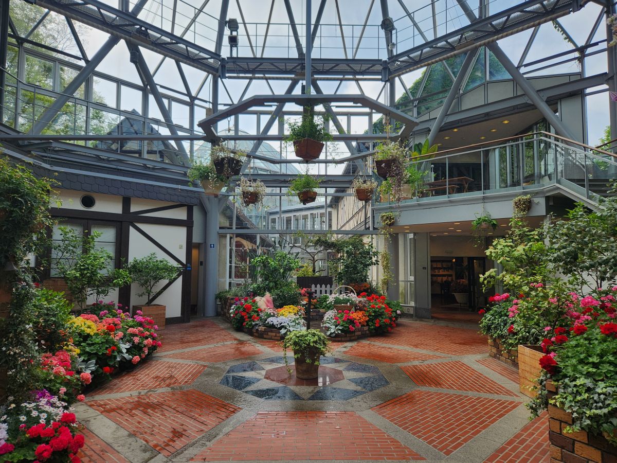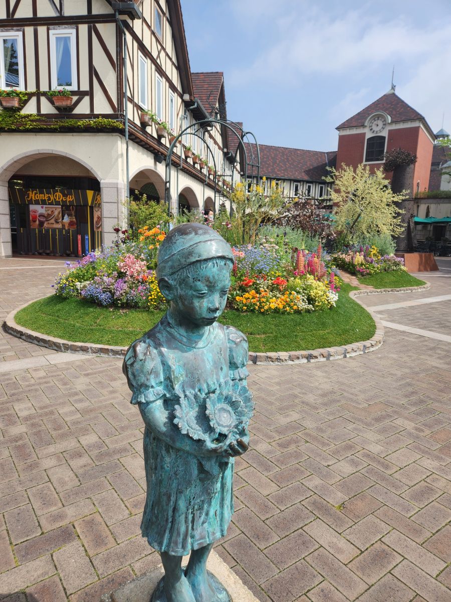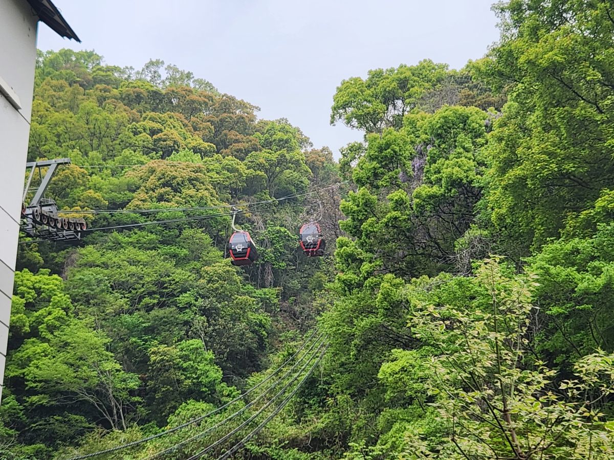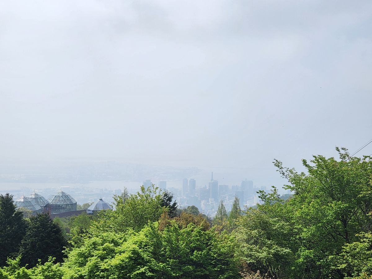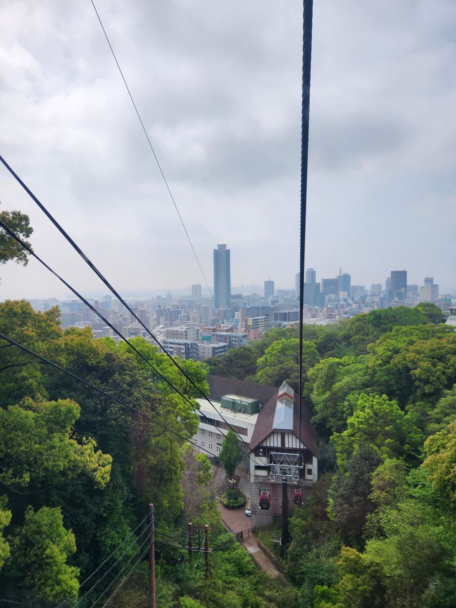 Zo is right at the station when we arrive – and we were 30 minutes early. Sweet! So off we go into the sunshine walking up to the ropeway (cable car) – which isn’t even open yet because we are so early – to ride up, up, up to the top of the Kobe Nunobiki Herb Gardens, one of the largest herb gardens in Japan with over 75,000 herbs and 200 kinds of flowers blooming throughout the year. The ride is beautiful, with Zo orchestrating where we should sit for the best views, then taking his own cable car so he won’t intrude upon our ride! The views across the city are incredible, unfortunately still a little foggy this early in the morning. But still, what a view! We can also look down into the gardens, all orderly and organized, as well as down to the Nunobiki waterfall. Super fun.