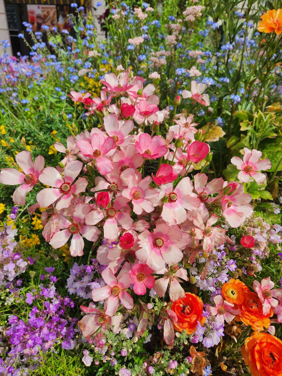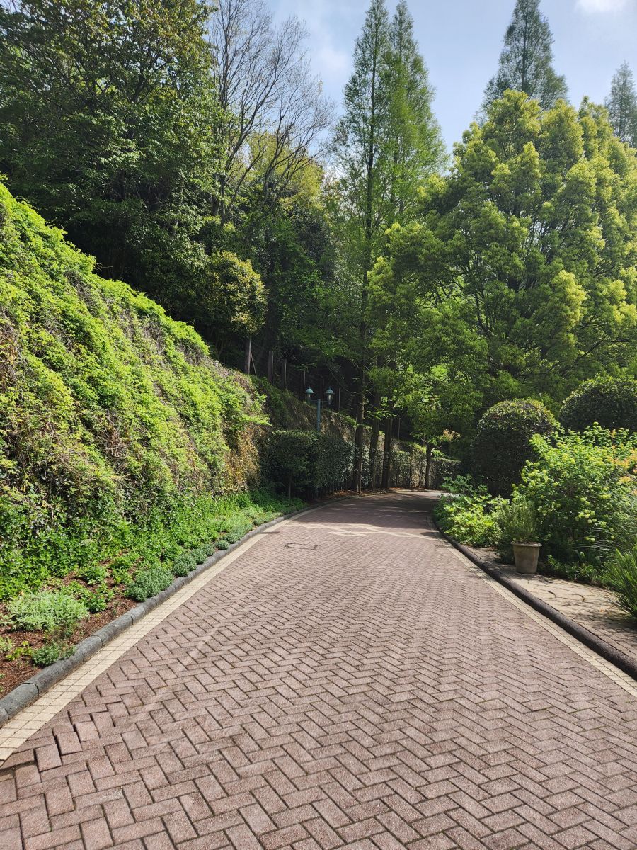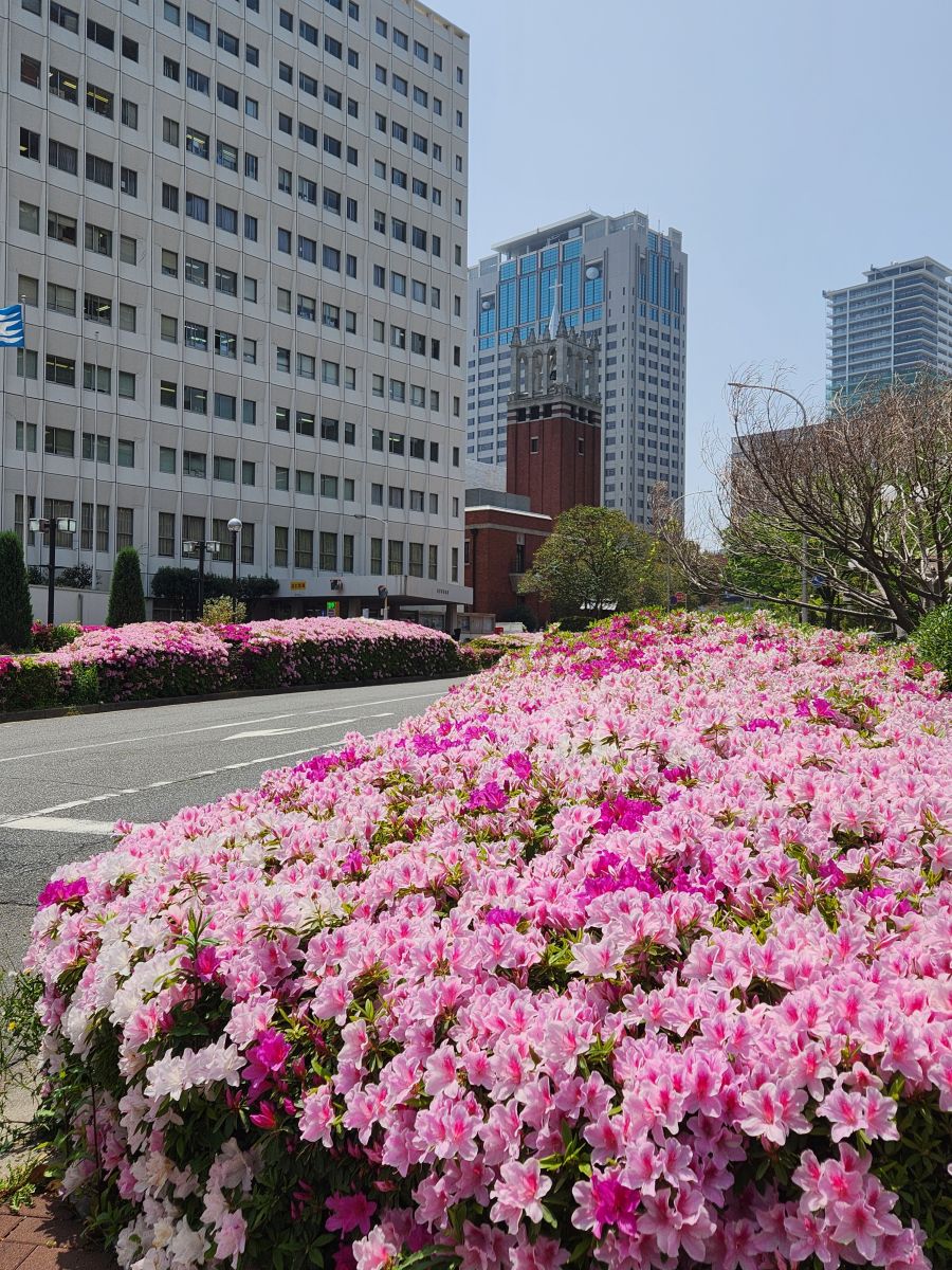 The final section of gardens are terraced beds full of tulips and other freshly planted bulb flowers, then a section of rhodies and little rest areas full of hammocks. A totally lovely way to spend an hour or so on this beautiful day in Kobe. We are so glad we did this tour today and not the last time we were in Osaka. It would be miserable in the rain!