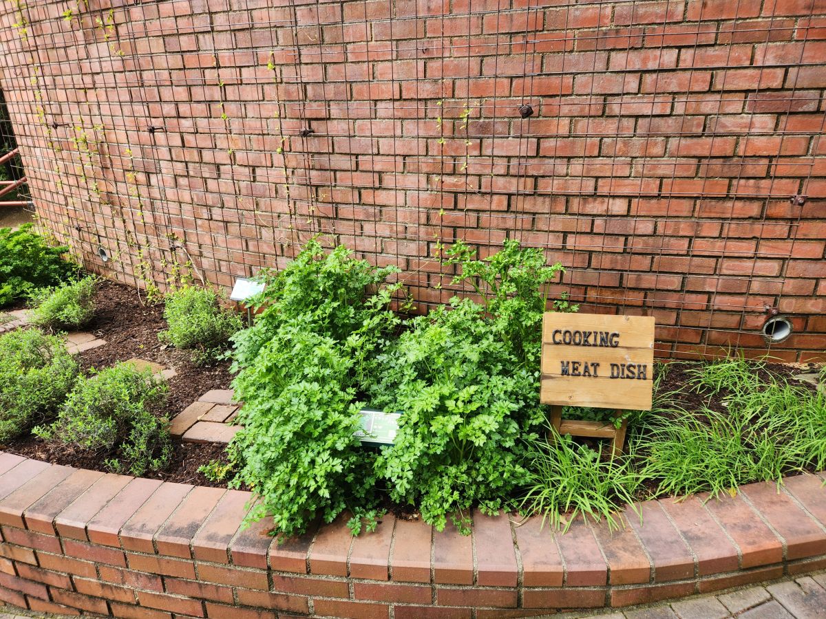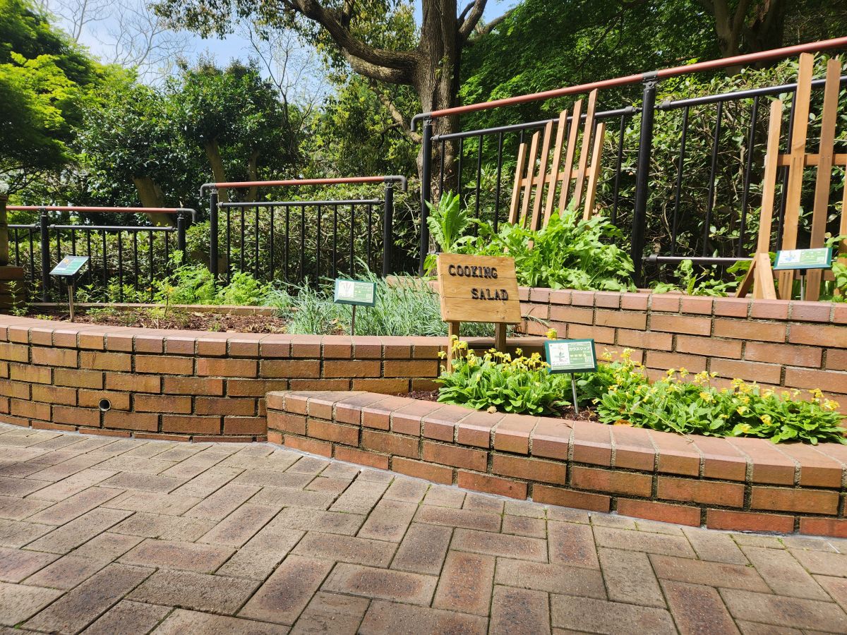 Back out in the garden, we wait until 10 for the trailway to open, then wander down the paved trail and stone stairways, through lush mountainside forest and into a brick garden area, where herb gardens are grouped for usage. Cooking for salad, cooking for meat dishes. Such a great idea.