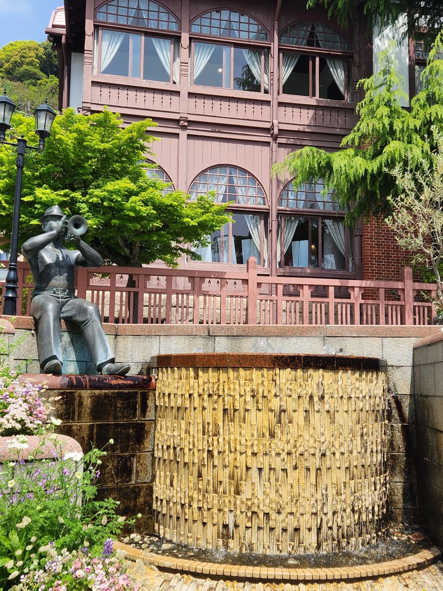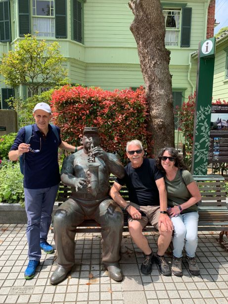 Finished with our meal, we found Zo outside (he doesn’t eat with us because he is fasting for Ramadan – don’t know how he does it, walking past all these temptations! Dedication) and meandered our way to the seafront, passing the site where the first American Consulate in Kobe was constructed in 1868 (Now a newer building since earthquake and war destructions).