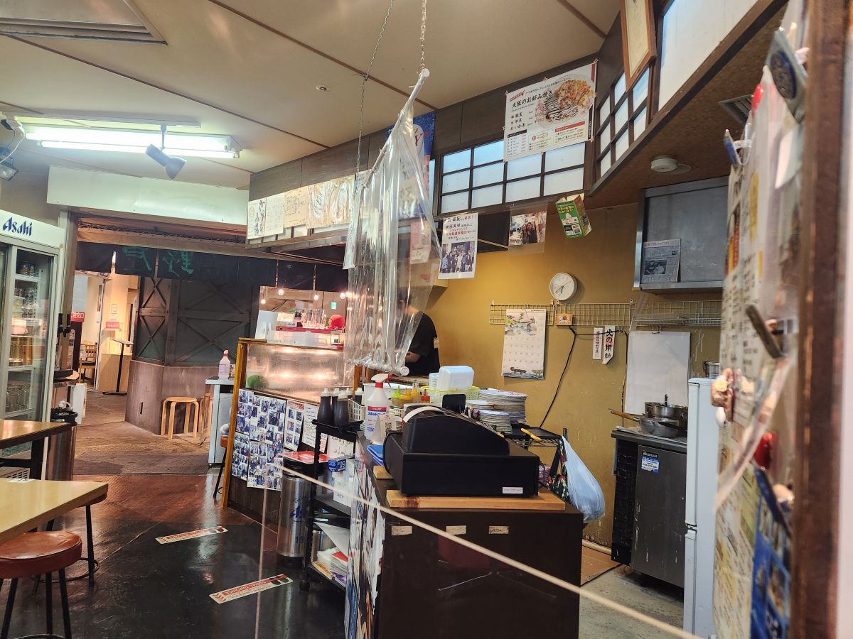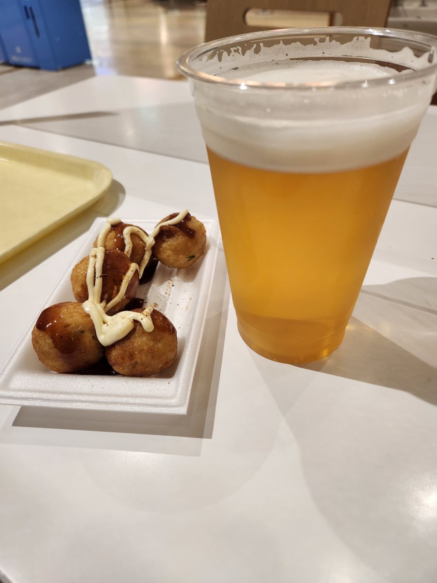 After our hour’s train ride back to the pier, we wander the main street leading to the pier, looking for restaurant options for dinner. We figure we’re here late, there is no reason not to eat outside. There are a couple of options we note, but then we head into the mall at the pier where there is a huge food court with tons and tons of options – including Takoyaki, our favorite little octopus balls. There is also this little restaurant tucked into the back of the court, run by what appears to be a family. They are open until 8, and well, that just makes up our mind. Why wander down the street when we can come right here, a 3 minute walk away. Done deal.