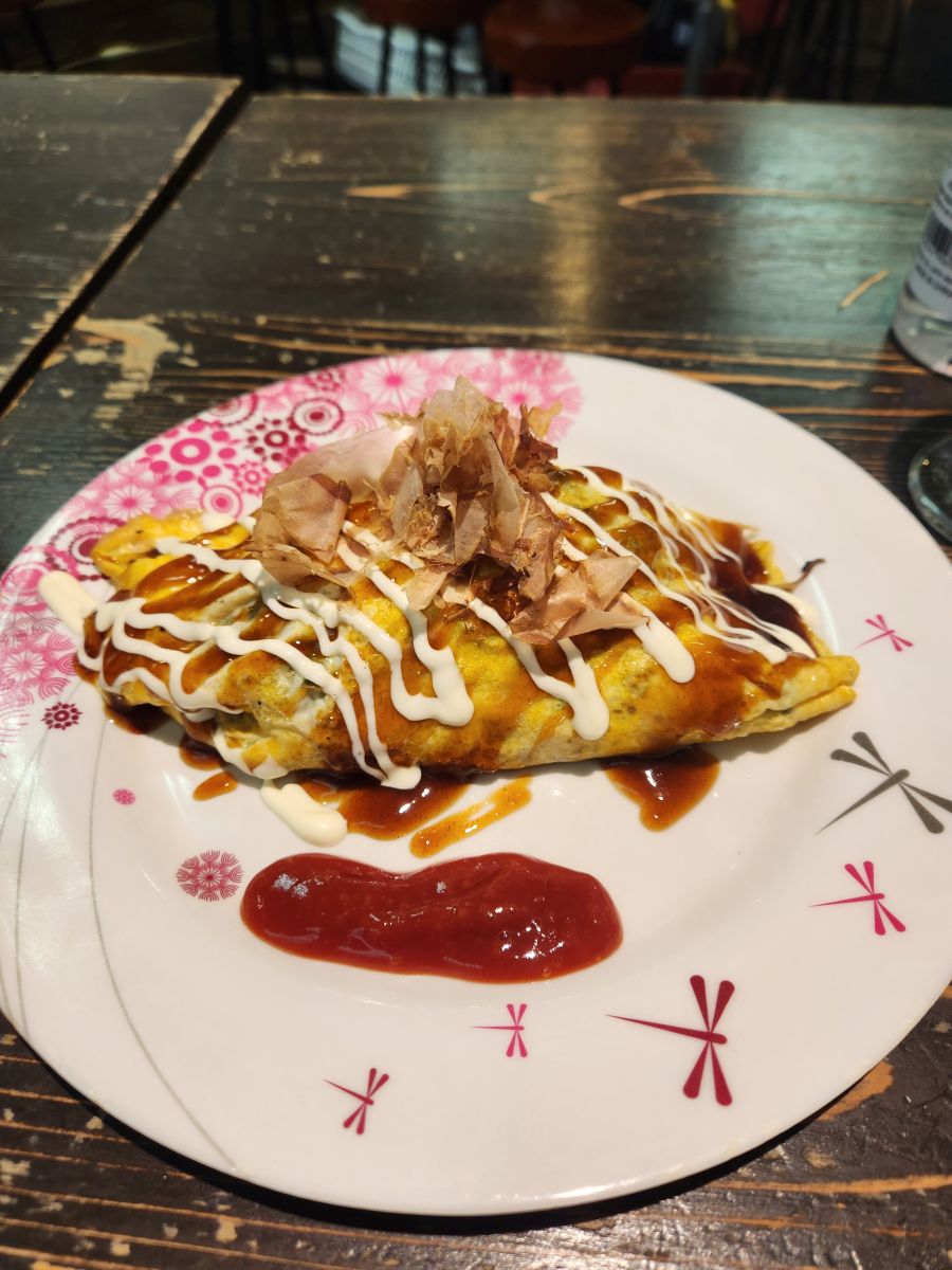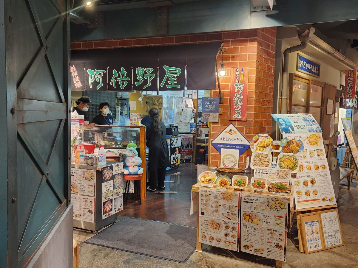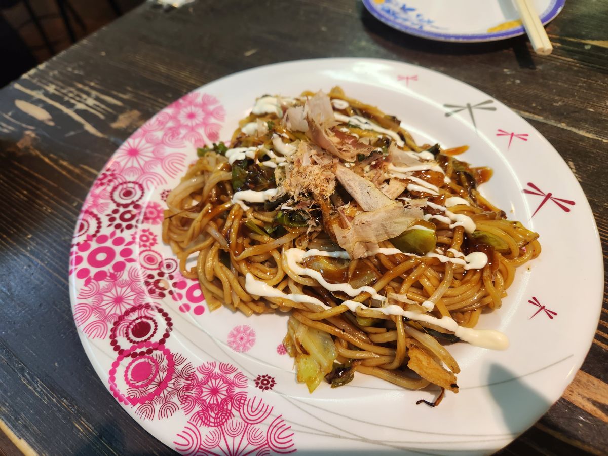 Later, after our normal on ship routine – gym, drinks at the pool bar with Mark – we head back to the mall and straight to Osaka Teppanyaki Abenoya where we are the only tucked into our corner table (of course, where else?), perusing a huge menu where I can’t make up my mind between Okonomiyaki and Tompeiyaki, a lighter version of the Okonomiyaki made like a stuffed omelet. The helpful waitress (daughter) and I get into this whole discussion about the differences between the two and which one I should order – she finally decides since it is my first time, I need to have the Tompeiyaki. Sold! Ed orders the “traditional sauce fried noodles,” i.e., Yakisoba, and we tuck into an absolutely excellent last meal of our favorite foods in Osaka.
