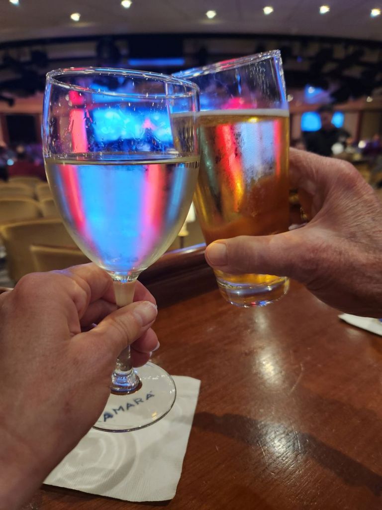 With our haul safely stowed in our cabin we make our way down to the Cabaret for a great production show, managing to snag “our” seats, and enjoy the rest of the evening sailing away from Osaka. Boo Hoo.