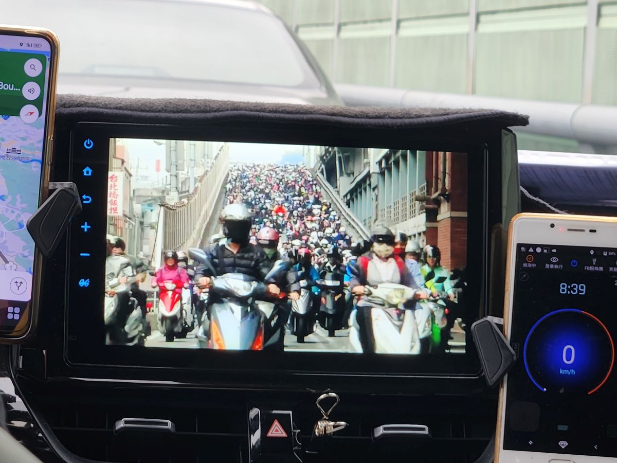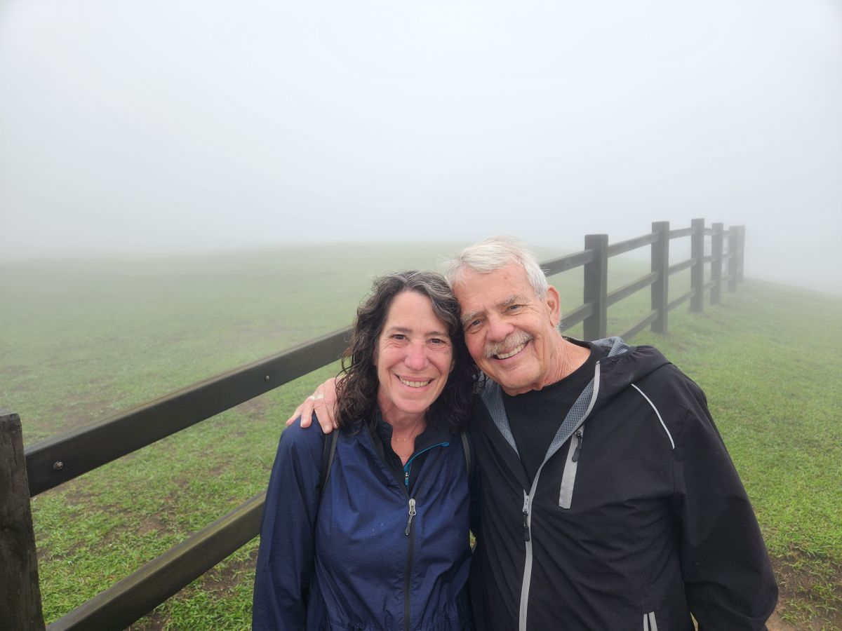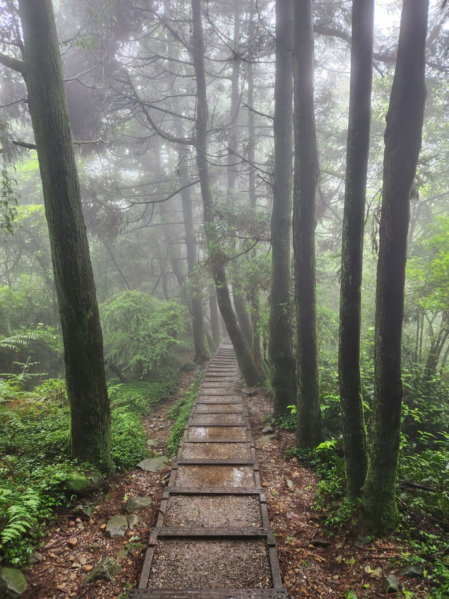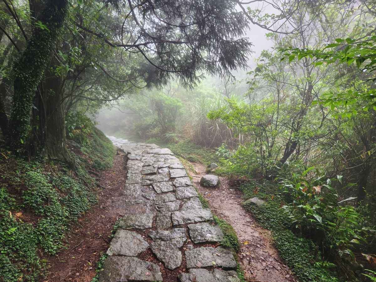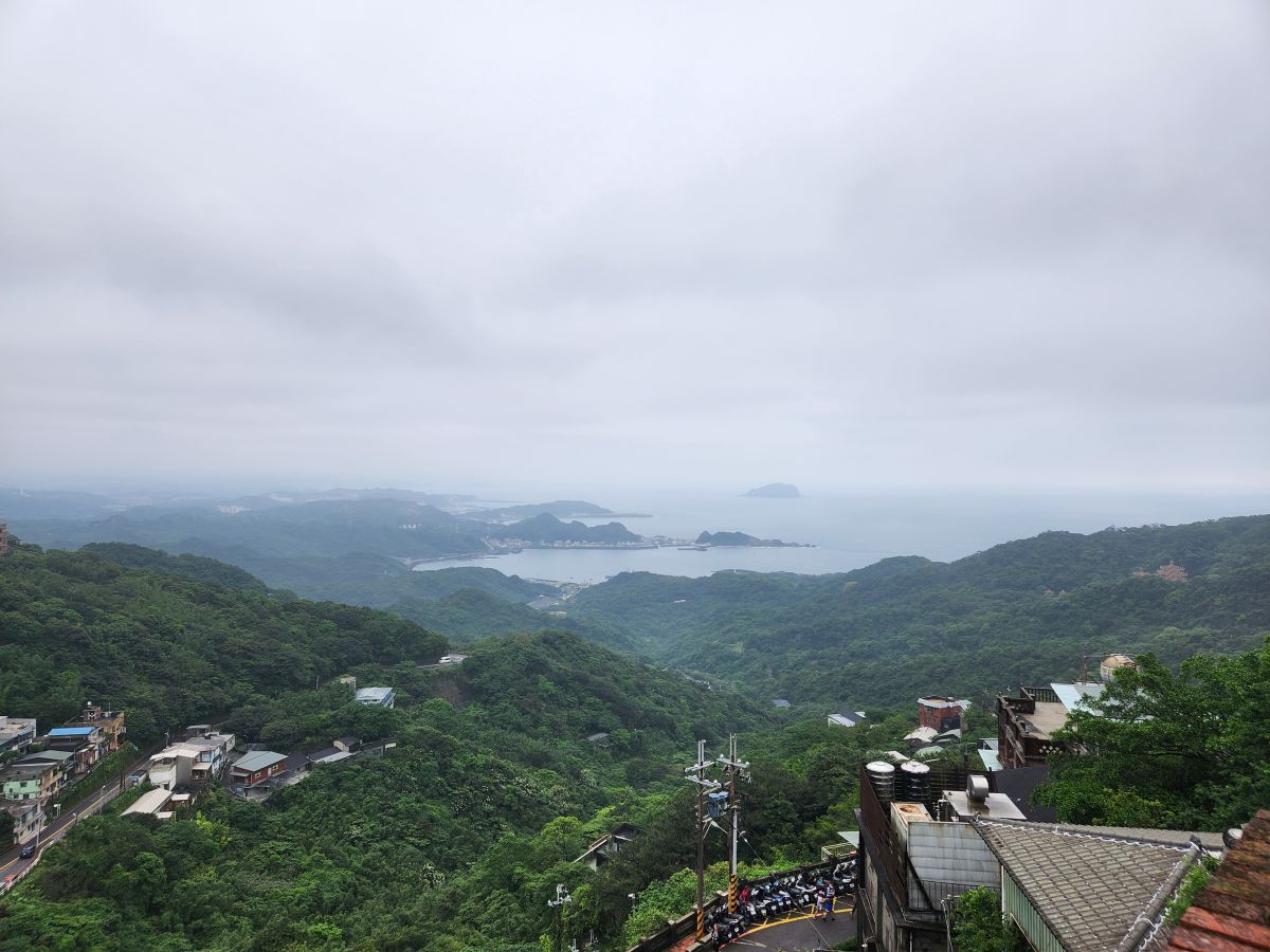 On through the traffic we go, skirting around the main center of Taipei, then up into the mountains on a winding road that would have beautiful vistas if not for the fog. It wasn’t raining when we started out, but now it is sort of misty, foggy, drizzle. Oh well – not like we aren’t used to this type of weather! We’re equipped.