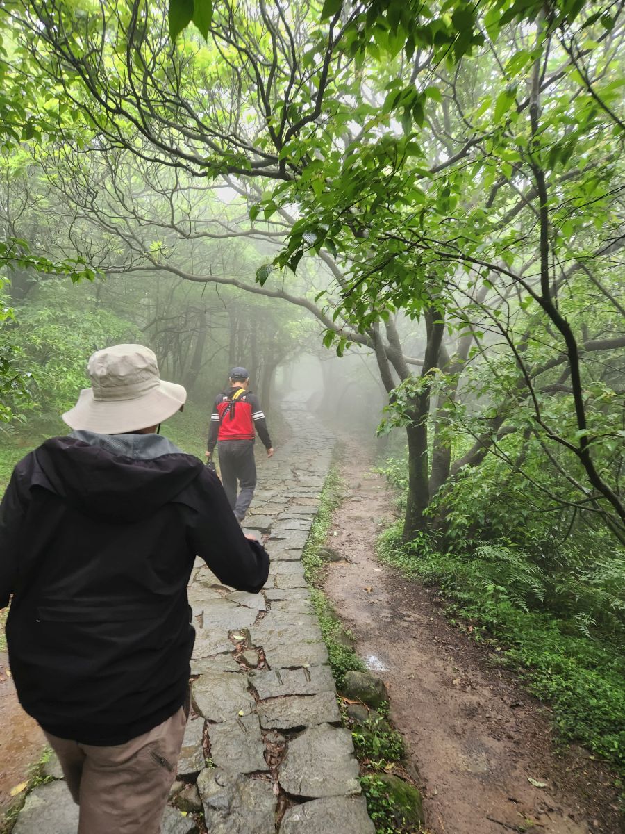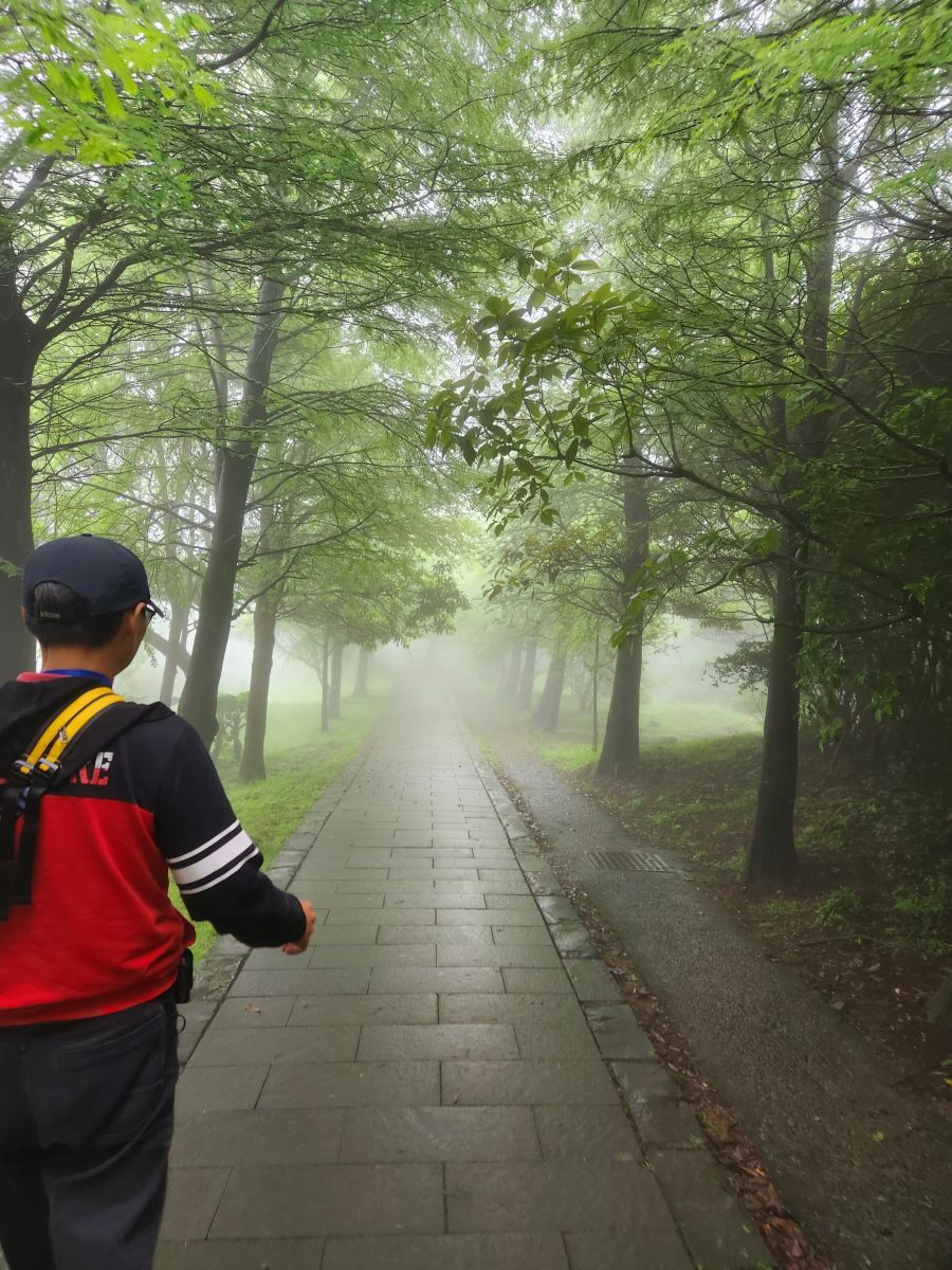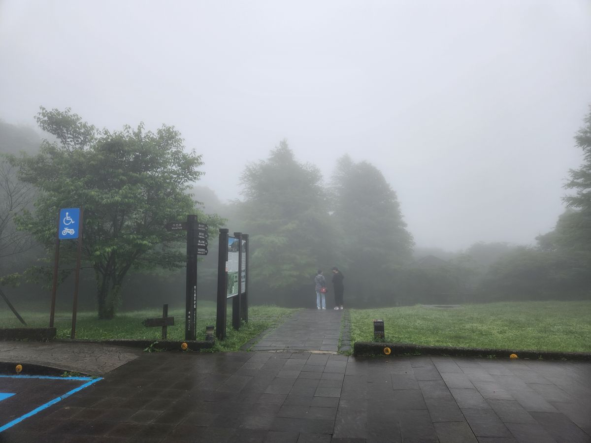 Reaching the park, we hit the restrooms then take off on a hike along the Lengshuikeng-Qingtiangang Trail to the Qingtiangang grasslands. First Vincent really wants us to see the milky pond that has water that looks like milk, from the Sulphur we think, but that’s a non-starter. The fog is the only milky thing we see!