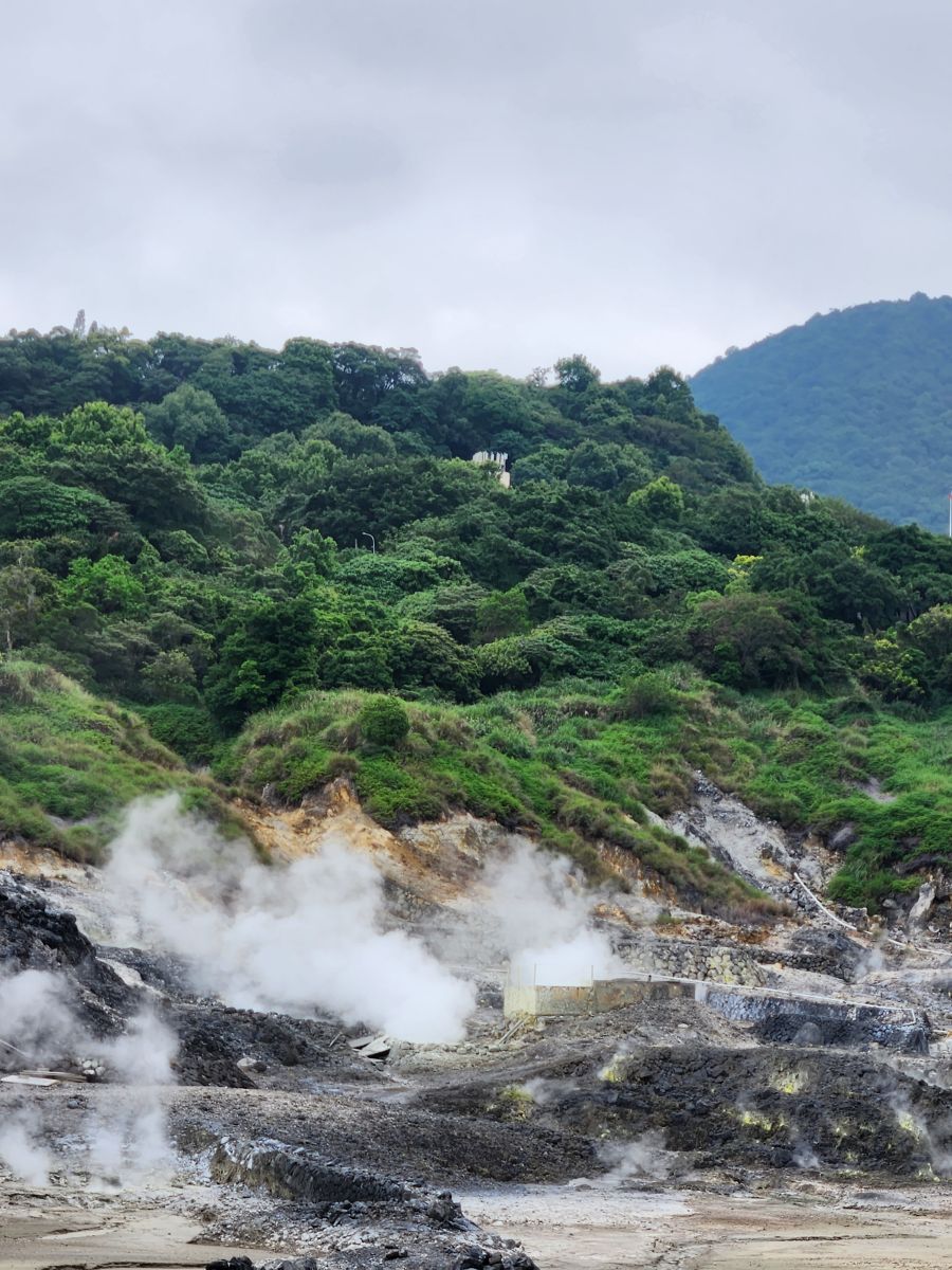 Our first stop is the Yangmingshan National Park, about an hour’s drive away. On the way, we get to know Vincent a little better and chat about our trips and his tour guiding. He also plays us videos on his really sweet tv mounted on the dash. Talk about technologically advanced – and hooked up! But it is great way to introduce us to some of the places we will be visiting, like Chiufen Old street and all the food we should try when we get there. Then, as we are sitting in stop and go traffic, he shows us a video of the scooter waterfall. OMG. Seriously, it is a scooter waterfall, this one bridge that is only for scooter use, and every morning the scooters pack the bridge and exit off onto the streets looking like a waterfall. Look it up on YouTube – it’s amazing!