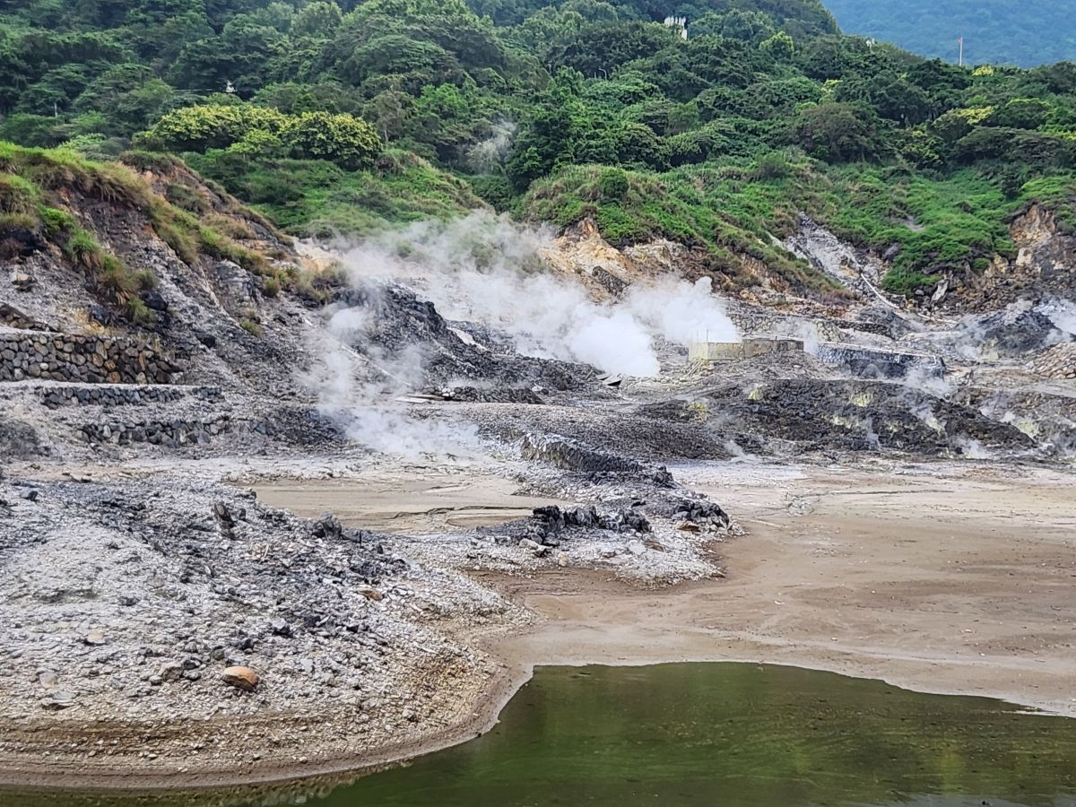 Driving down the mountain, the fog is lifting a bit, so we do finally get some nice long views across Taipei. Vincent has suggested that we go to the Beitou hot springs to see the sulfur ponds that have been left behind after mining activities over the years. We’re game – we have all day to do whatever we can, so sure – sulfur ponds it is. They are really pretty, if not stinky, but a fun little stop.