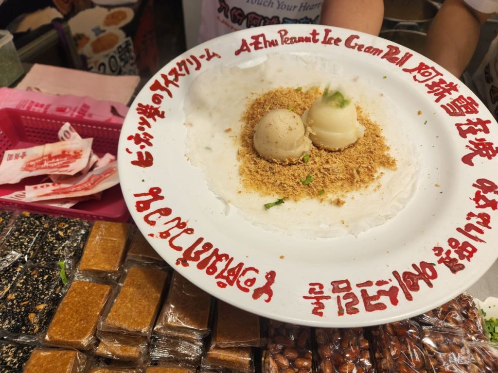 Last treat on our tour is the awesome peanut ice cream we had the last time in Taiwan. So yummy and the perfect little treat to end our food tour. We buy Vincent one as well, and we all happily snack our way back down the street, buying our cookie/crackers and sesame treats, as we head to the car. We could eat ourselves silly up here – and would have – except that we have our Asian Chef’s table tonight and need to save room for that yummy experience!