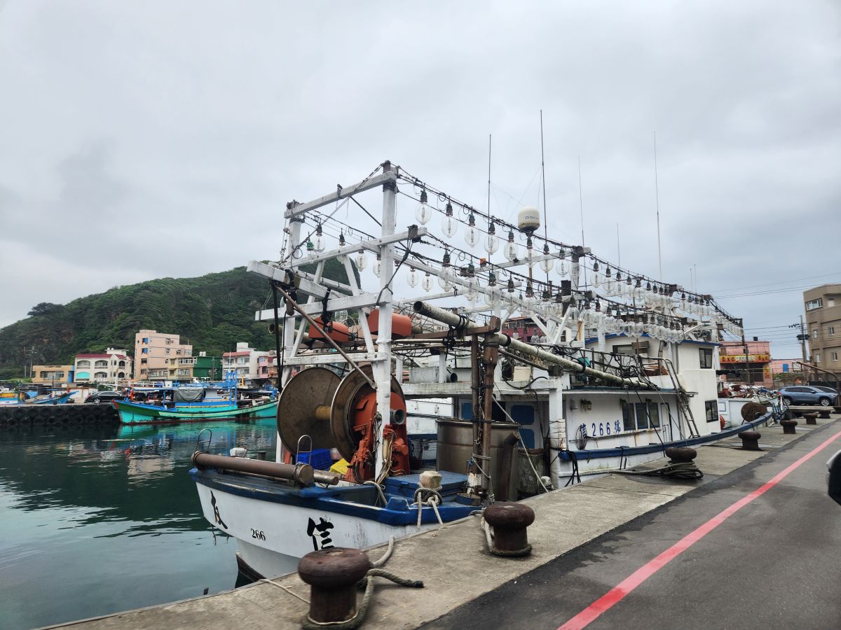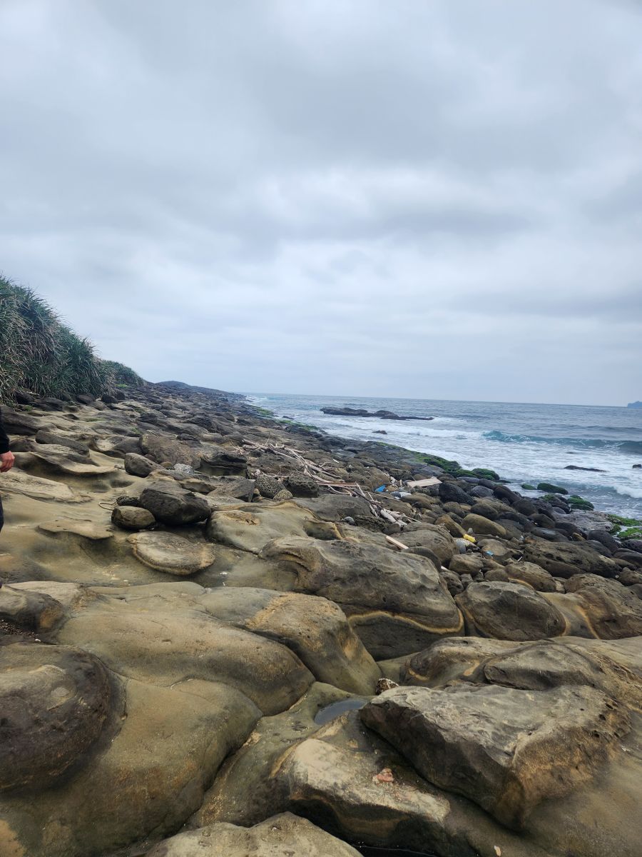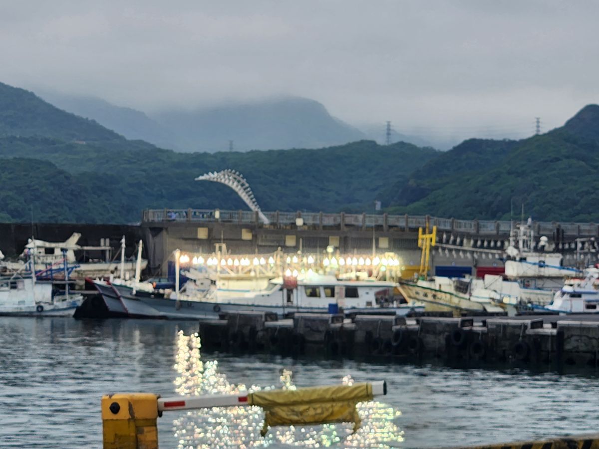 Now we are heading to our last stop, the Wangyougu Trail, but first Vincent has other ideas, of course he does! He wants to take us to the Shen’ao Elephant rock. Sure. Let’s do it. We drive past the Golden Waterfall, which we’ve already seen last time, past the mining company ruins and around a little harbor with tons of fishing boats where we get a close up look at all those lights they always have burning at night. What we thought were spotlights are actually this big glass globe with a fluorescent bulb in the middle. Wow, had no idea!