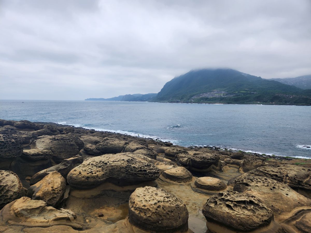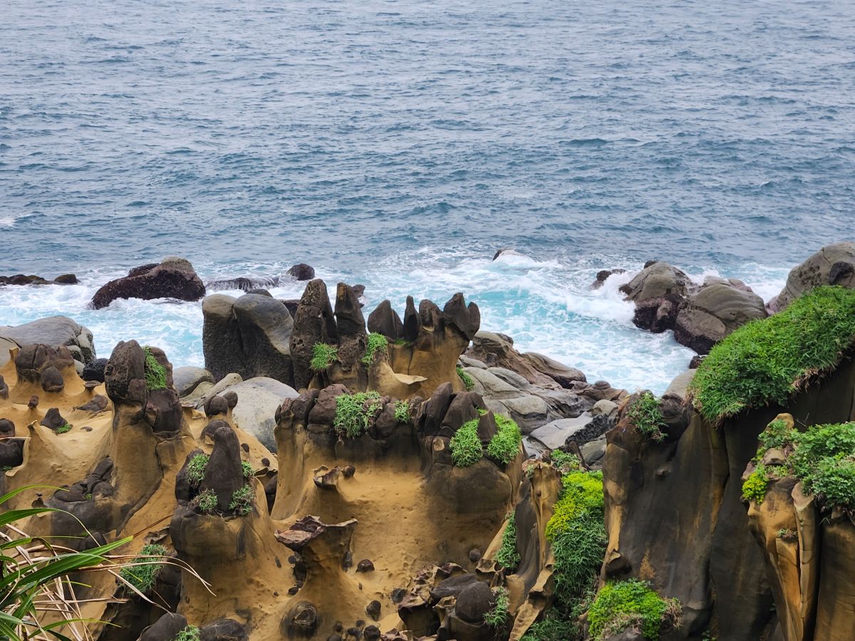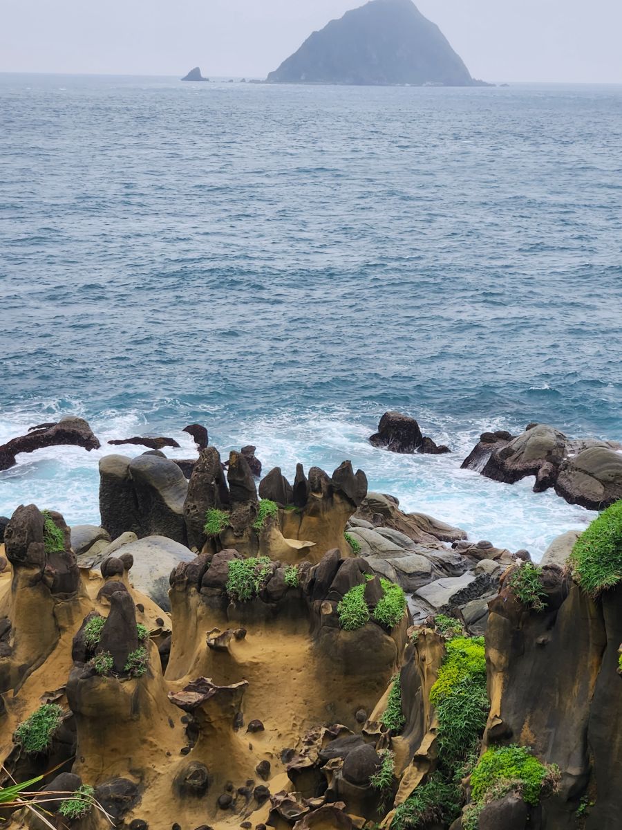 Because we liked this stop so much, Vincent next suggests that we go to the Heping Island Geopark to see all the geological formations there. Sure, why not! So off we go to this beautiful park with what they call an “island in an island” formation at the entrance to the long pathway walk. The rock formations are incredible here, with an area called Chien Tueg Fu, a name given during the Japanese occupation because they thought the tofu rocks looked like a thousand tatami mats had been spread out over the water. And they really do when you think about it!