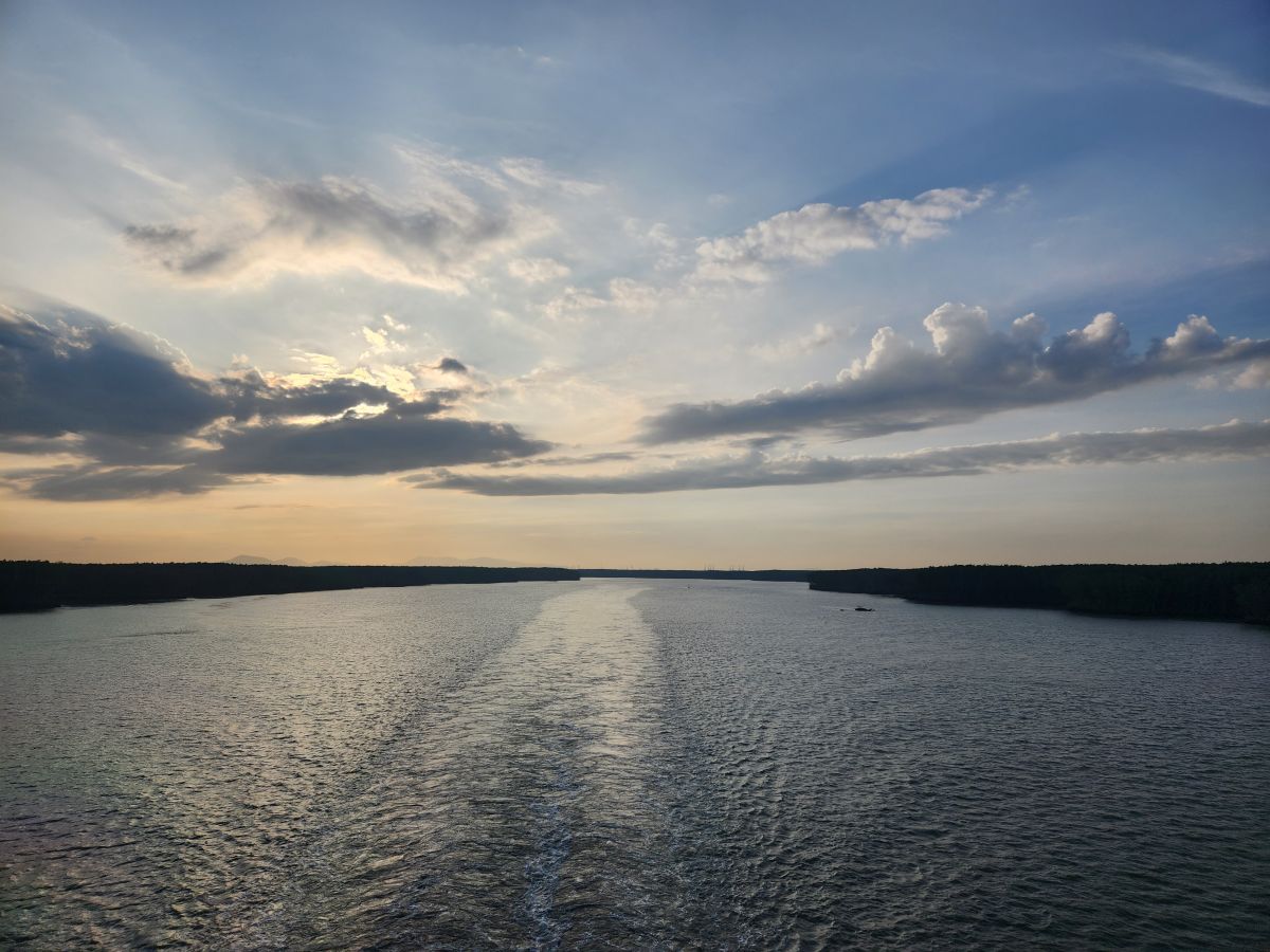 We arrive a little later because of the slalom, it takes 5 hours to sail up here from the sea – but this is an overnight port, so there isn’t any issue with timing. Of course, for us it doesn’t matter at all because we are going on the aforementioned tour. Of course we know the drill by now. Grab our bus stickers and head out to the gangway right as the ship is released, making us first on the bus. Team Stevens!