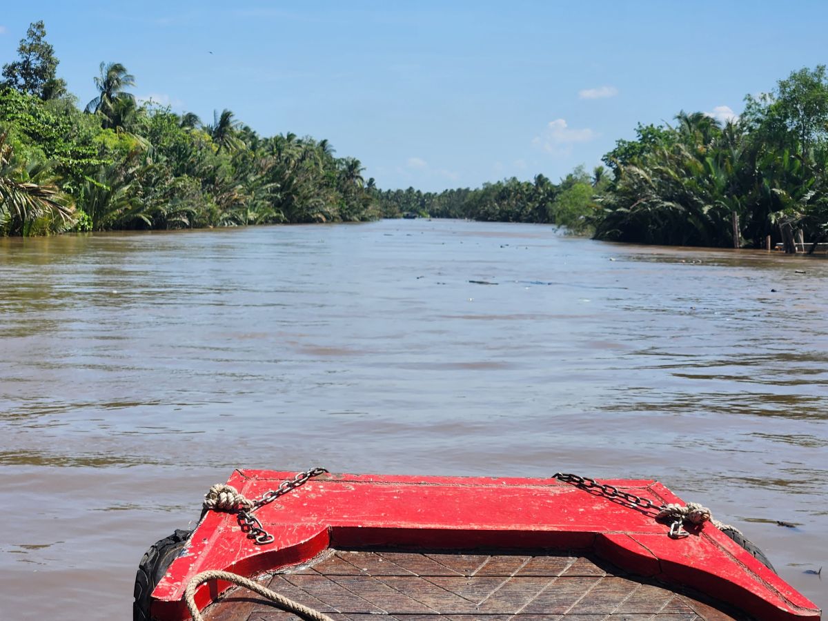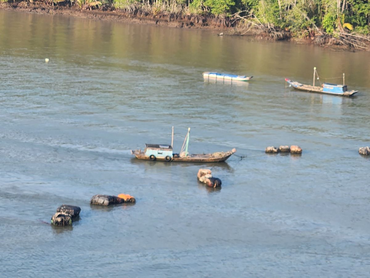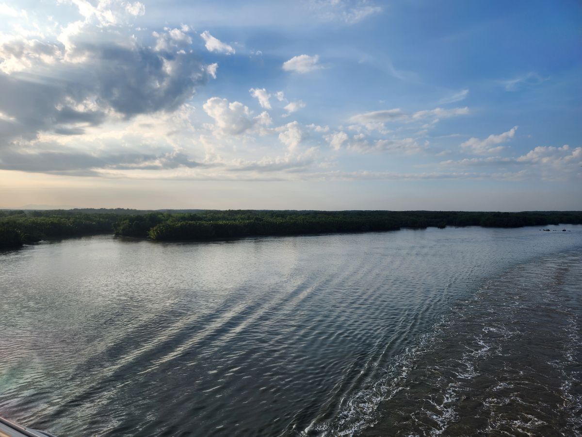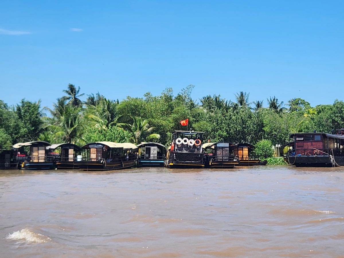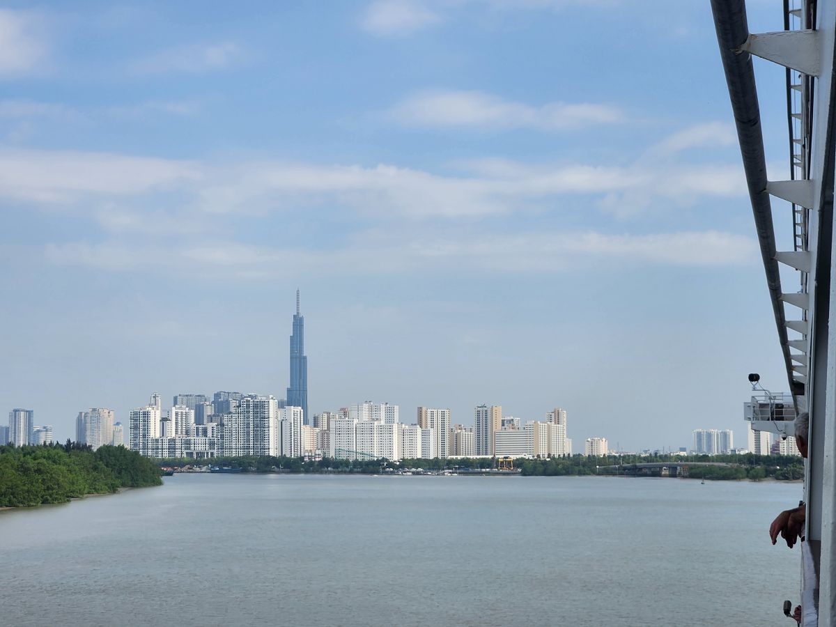 One of the huge bonus features of sailing on a smaller sized ship, such as the Quest, is that we can sail right up the Saigon river and dock pretty much in the city proper. We loved that when we were in Seville, and here in Saigon, it isn’t all that much different – although it is such a huge city that there is a shuttle to take you into the main central district. Not that we’ll be using it though, because we have a tour to the Mekong….but first we have a lovely sail up the river, or as the Captain calls it – the Saigon Slalom! Pretty accurate actually as the river twists and turns its way through the mangrove forests, past innumerous fishing boats and fish farms and finally into the massive overdevelopment that is Saigon.