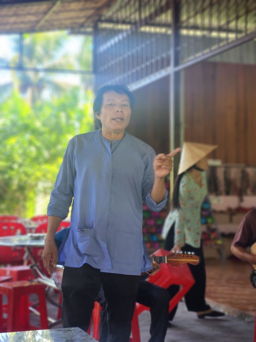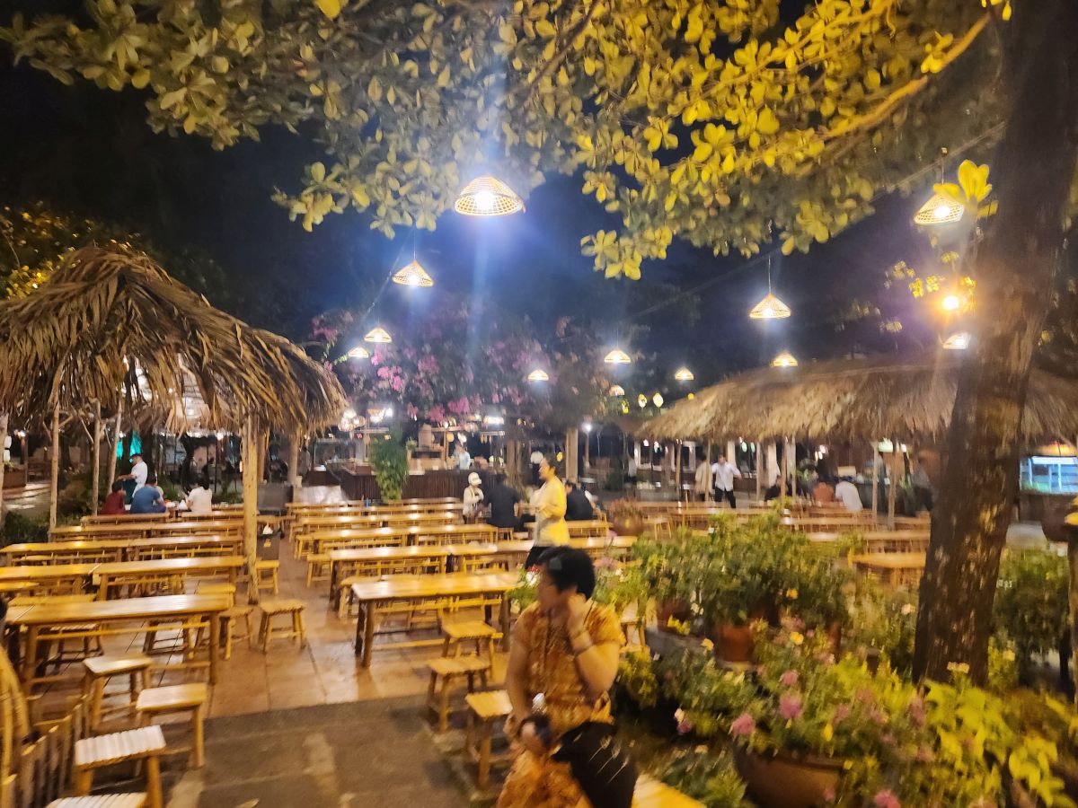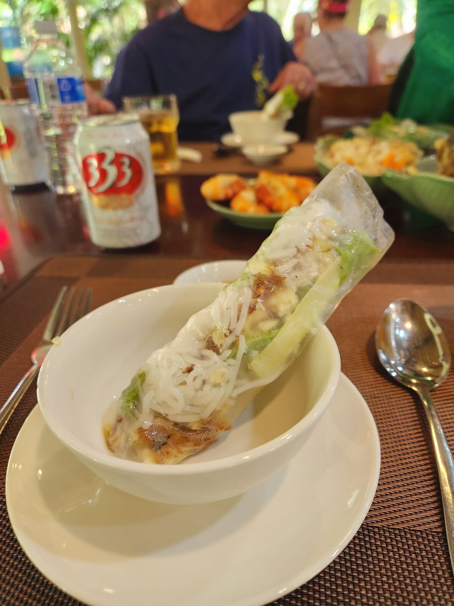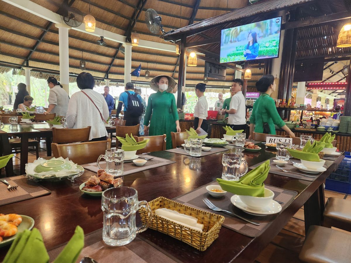 A quick room stop for the facilities (the only thing Guide-boy was a little lax in was facility stops) and we’re up in the buffet, fed and back down in the cabin with enough time for a quick shower. Then back downstairs in time to be called for our bus ride to the Binh Quoi Village for our Vietnamese culture evening.