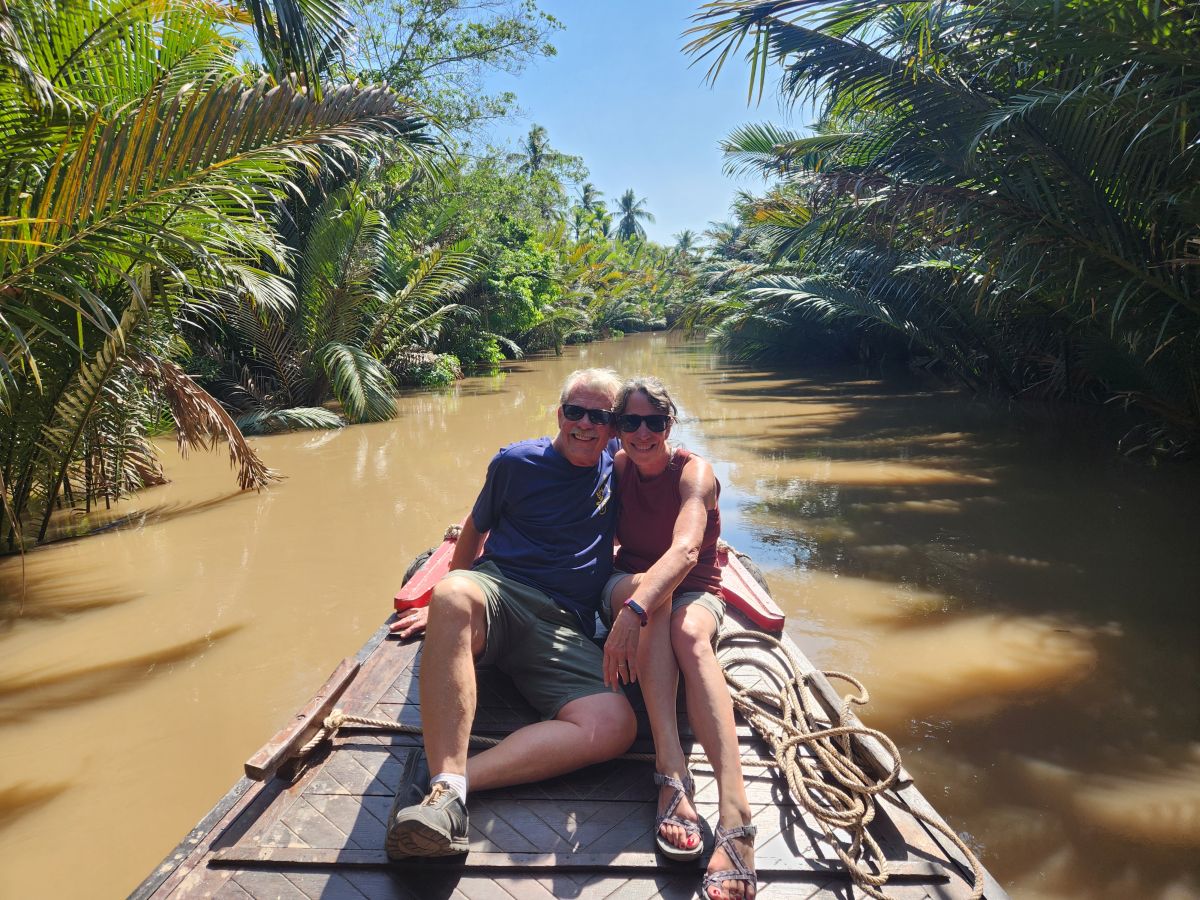 Back to the tanks, which take us to the Sampans where we float down the river a bit, marveling at how these men and women can propel the little canoes down the river without tipping us over (yeah, we have our own experience with that – needed a Sampan driver on that trip in HaLong) then it is back to the tanks which take us to the bus.