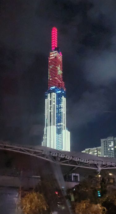 First class all the way. Just an excellent evening all around. And then we were released to our buses to make our way back to the ship through now virtually empty streets (except for the ever present scooters), passing by the wonderfully lit 81 story building that is the tallest in Saigon and talking to one of the guides who hopped on the bus with us about traffic and scooters – showing him the scooter waterfall from Taipei. He in turn showed us a picture of massive scooters on the road in a huge traffic jam – turns out that photo was from a little while ago from another guide who was on the Mekong tour on – thankfully – another bus! They got stuck in all that traffic coming back and didn’t even make it to the show. They didn’t get back to the ship until Azamazing evening was 75% done. Huge bummer.