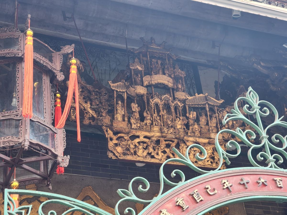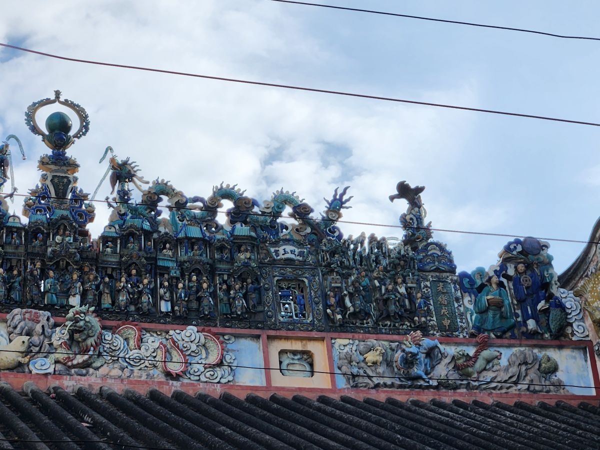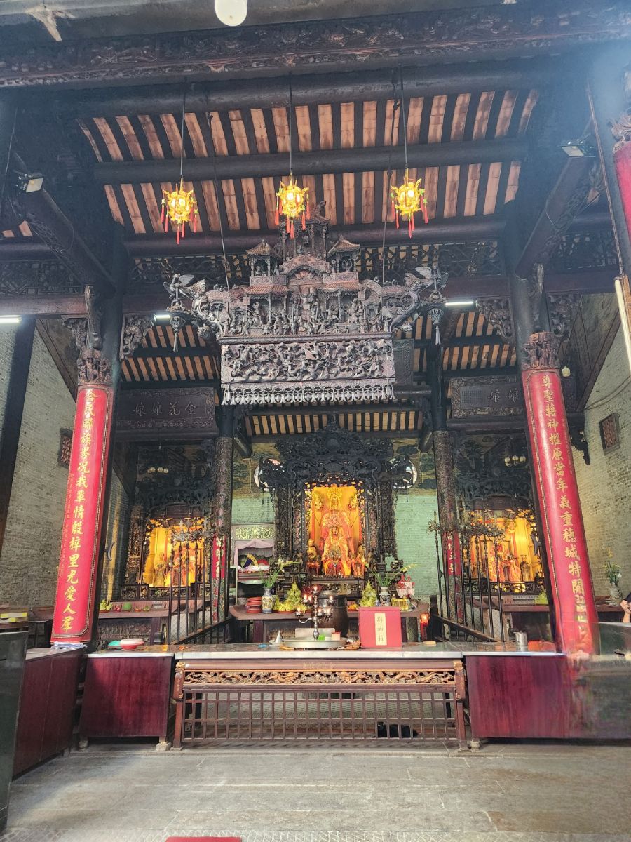 Our next stop is the Thien Hau Temple, dedicated to the goddess that protects seafarers. An apt place for us to visit, seeing how we are coming and going on the sea! It is massive and impressive with the most intricately detailed carvings along the roof top and the walls – and just everywhere. There are beautiful wooden figurines as well as those huge spiral incense coils burning away.