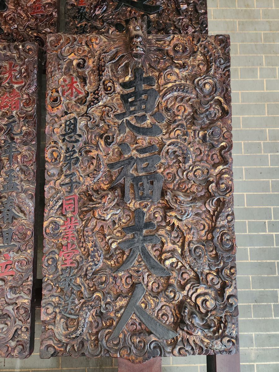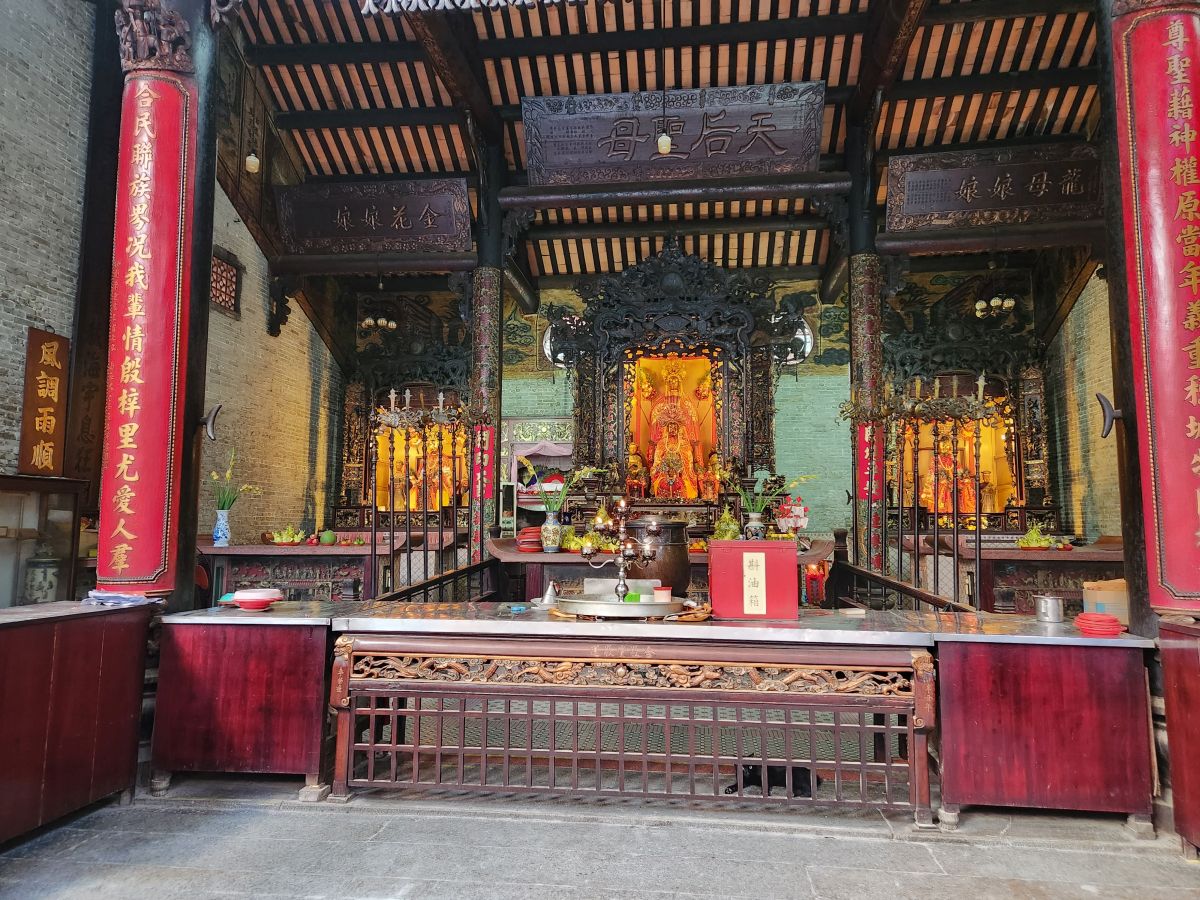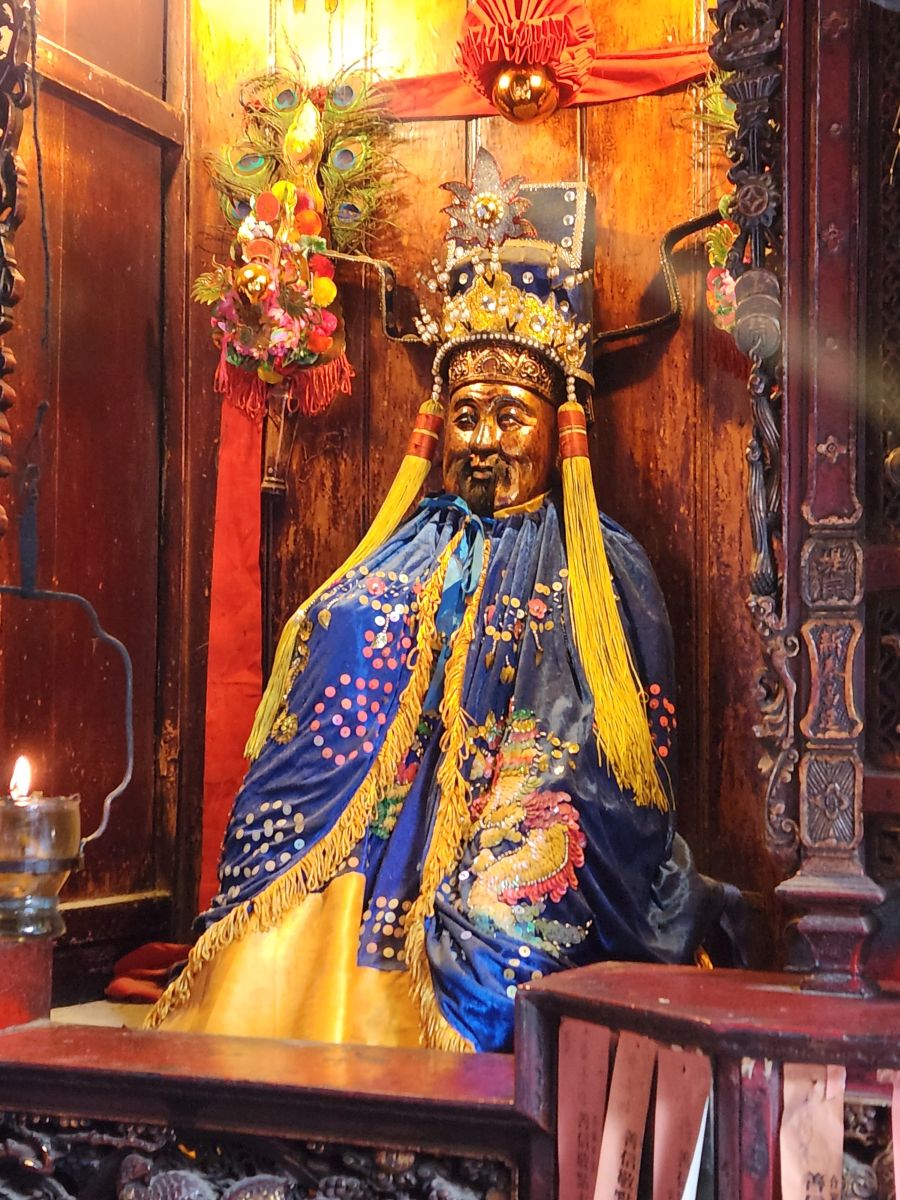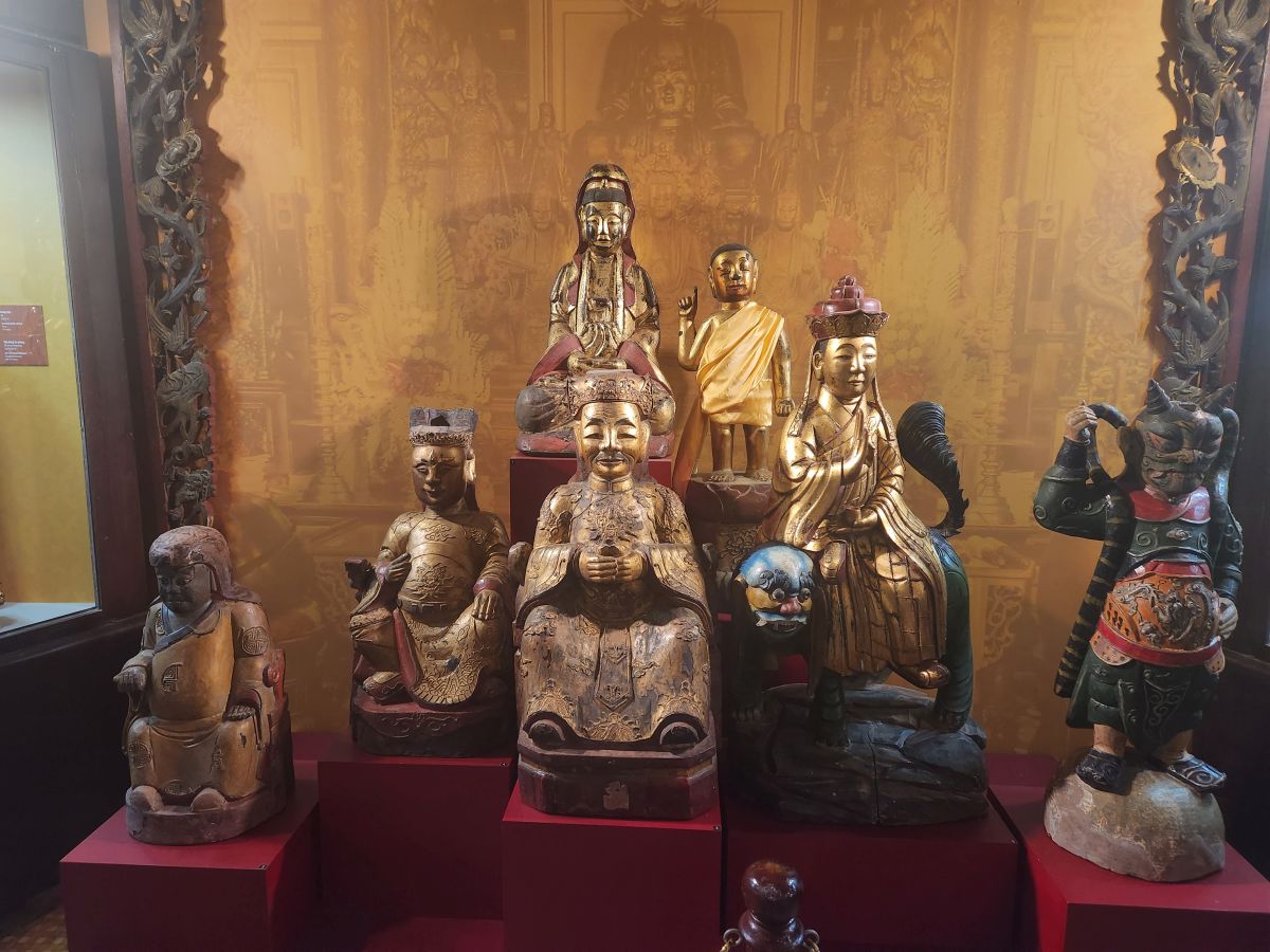 Our next stop is the Thien Hau Temple, dedicated to the goddess that protects seafarers. An apt place for us to visit, seeing how we are coming and going on the sea! It is massive and impressive with the most intricately detailed carvings along the roof top and the walls – and just everywhere. There are beautiful wooden figurines as well as those huge spiral incense coils burning away.