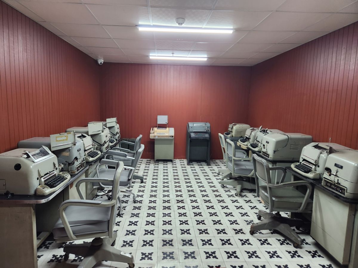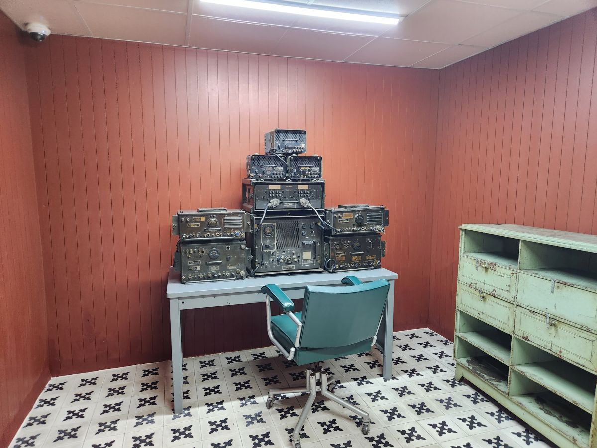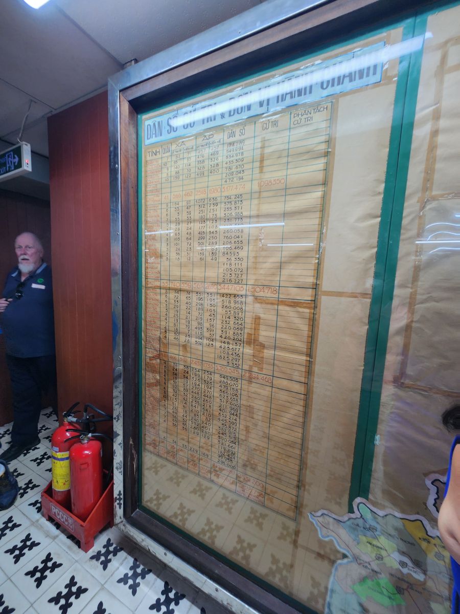 Probably the best part of this tour though were the tunnels underneath the palace, which were created for security from bombings that happened during the war. Even though it is down a lot of stairs with no elevator (stairs! More stairs! Yeah, the others are already grumbling) we manage to get most of our group down here and together to tour the different rooms that are essentially war rooms. This is where everyone worked and managed the war during the fighting. There is the President’s war room, essentially the situation room, with maps and these ancient old rotary phones and an adjacent room with a bed for him to sleep. There are rooms full of old standard typewriters and ancient radio transmitters and then another map room with detailed numbers of troops on the ground in 1968. It is all pretty cool and neat to be actually walking these halls (albeit crowded halls!!!).