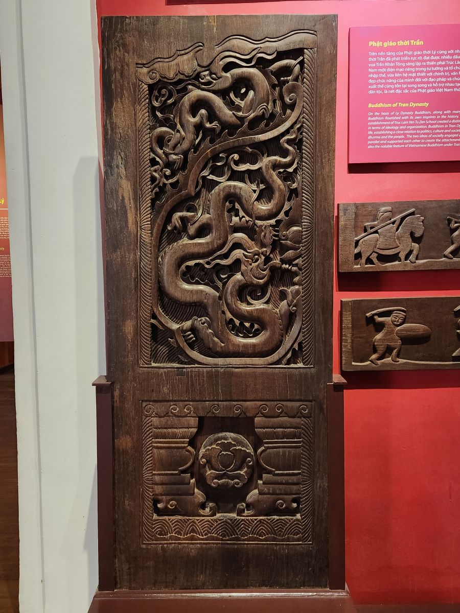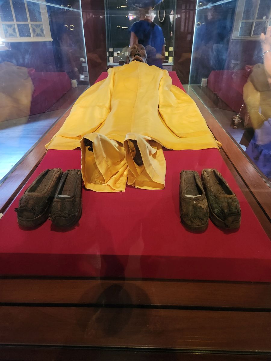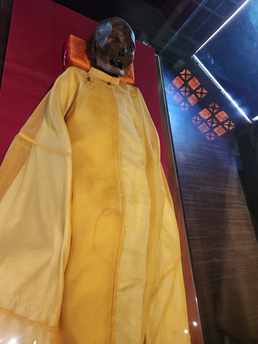 We arrive at the museum and are guided through a history of the ancient culture and peoples who created Vietnam, along with their artwork. There are buddhas and carved wood and ganesh statues and nagas and all things ancient and traditional. There is also this mummy that was excavated from an old graveyard in 1994 which is weirdly cool and interesting! Oh, and the king’s robes were really interesting as well. They are yellow, not red, one of only 2 countries in the world with yellow robes (China being the other) and they have an upside bat on the sleeve – because the word bat in Vietnamese means something – I don’t know, I can’t remember now – and when the word is turned upside down it gives you an overall vision of the world or some such thing. Anyhow – at the time the explanation was cool – and the little bat was cool as well!