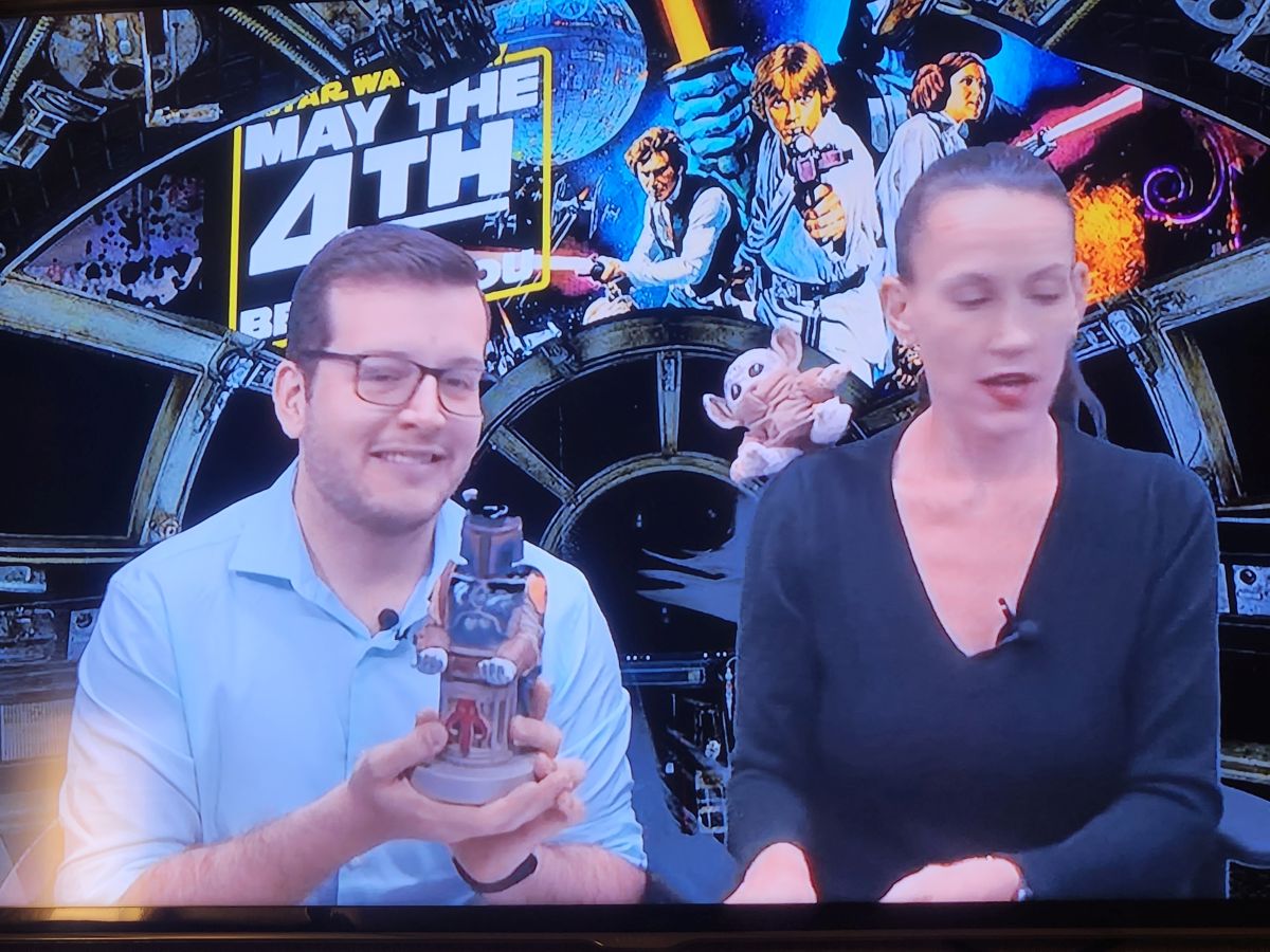 Well, I should amend that a bit – the only 2 additions were the farewell brunch – where Amanda was all decked out in her Star Wars gear! Thank you! I was wondering if there would be any May the Fourth Be With You celebrations. As it turns out (which I think we knew but had forgotten) Amanda is a huge Star Wars fan and on the morning show she and Jose display a bunch of things she has in her office, including the baby Yoda that sits on her shoulder. Love it!