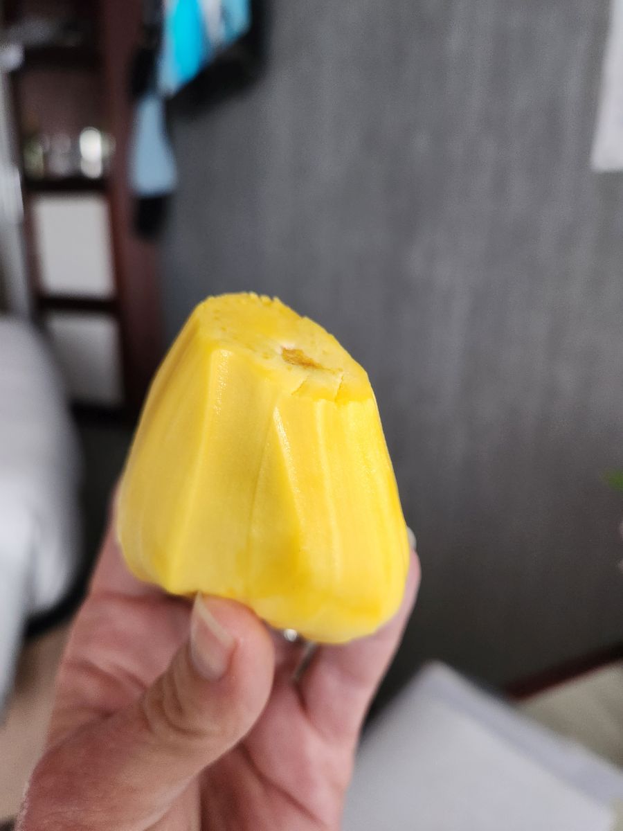 The rest of the day progresses slowly. Blogging, reading, eating the jackfruit we bought in Singapore (yummo!), walking, dinner at Prime C where they had fresh local oysters from Singapore! Ed had the cold appetizer and I had a filet with oysters on top – fantastic! Although way, way too much food which made me totally hit the food wall! Eek. I’m dieting beginning tomorrow!
