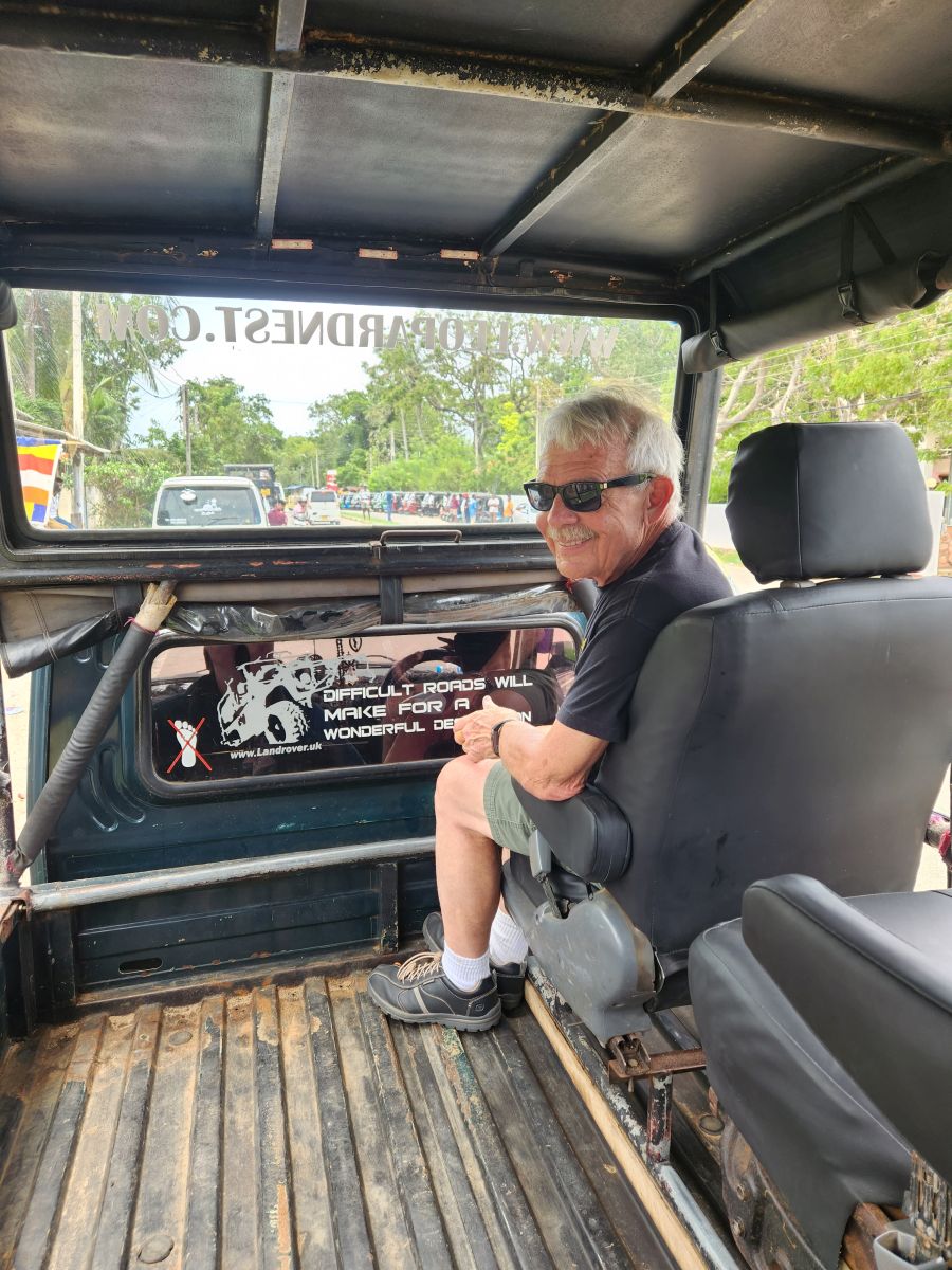 We have a late arrival today at 11am, so it is sort of like a bonus half day at sea! Which we spend in the normal fashion, gym, showers, cappuccino, hanging around. Arriving in Hambontota we are first off – where’s Simon when you need him?? – and ready to find the shuttle to the port gate. Hmmmm….this is a commercial container port with absolutely no passenger facilities, and quite frankly out in the middle of nowhere. While cruise ships do come here for the safari and the nature (oh and the beach…yes…the beach) – and the Europa II is actually already docked here – there is still not a lot of coordinated port assistance. Azamara does have shuttles to the Shangri-la where you can buy a day pass to hang out at the resort (no comment) and they’ve said there is a shuttle to the port gate (it is apparently really hard for independent guides to get permission to drive into the port), but when we are on the pier there is just general confusion about it. Ryszard and Adrian (GR Manager) are out there trying to figure it out. They call the port guys who say they are bringing a vehicle over, it will take 5 minutes. Or not…as we wait on the dock. Finally they decide to let us ride on the Shangri-la shuttle and it will drop us off at the gate on their way. Ok – but as we approach the bus, they tell us there are no more seats. Ah, man. We have limited time as it is – the park is 1 ½ hours away – and time is ticking here. As we are starting to debate whether to walk the 1.5k to the gate, a random port van pulls up with a port guy driving and we are ushered into the back with another couple and off we go to the gate. The driver is actually really sweet, calling out our names to the guides as he drives past the hordes of tuk tuks and vans and cars parked at the port entrance. We find Ramesh – or at least his jeep (he’s sent us his license plate number – thank heavens for WhatsApp) and we hop out of the van and head that way.